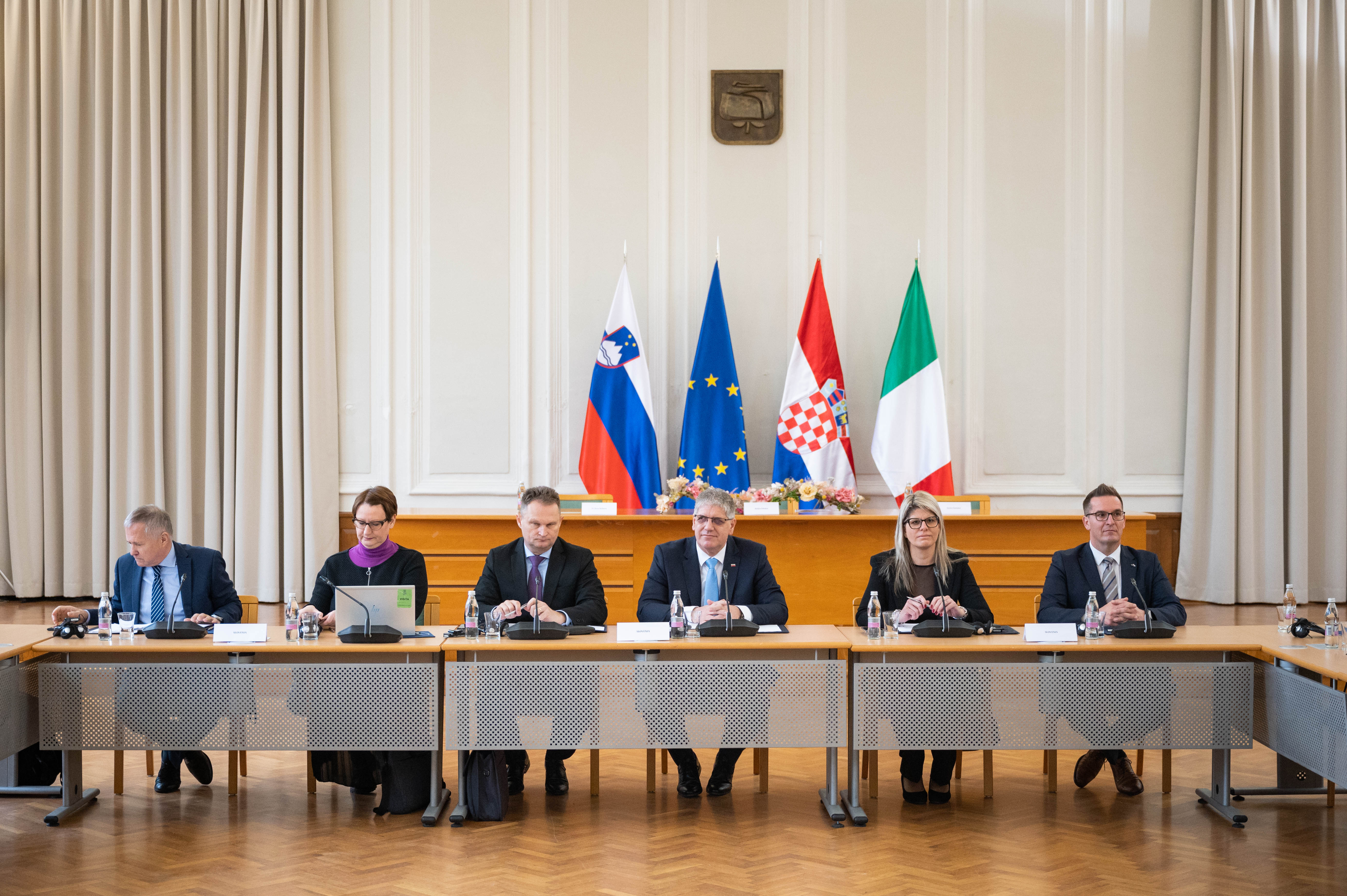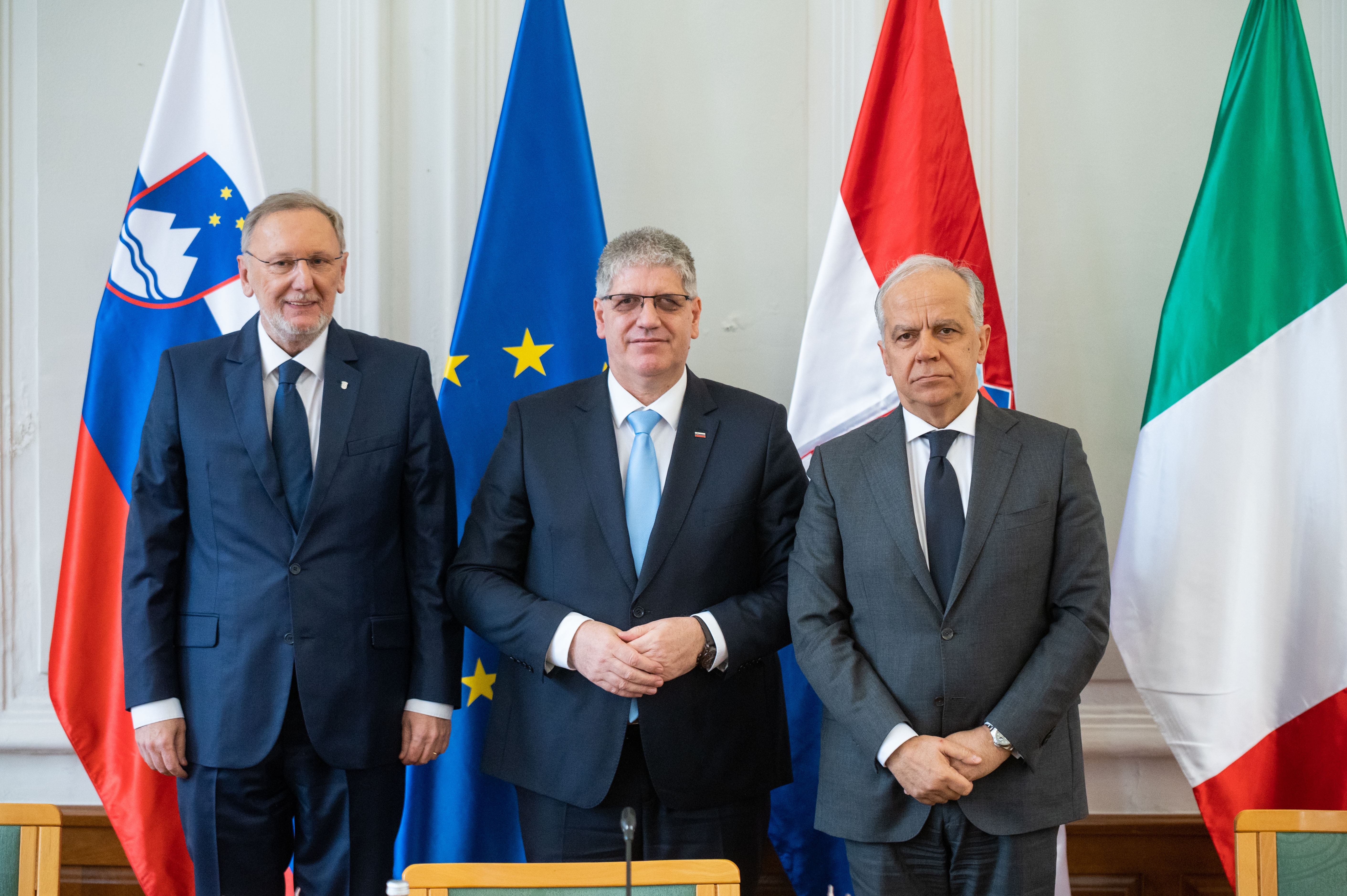Ministri za notranje zadeve Hrvaške, Slovenije in Italije dr. Davor Božinović, Boštjan Poklukar in Matteo Piantedosi | Avtor: Boštjan Podlogar, STA