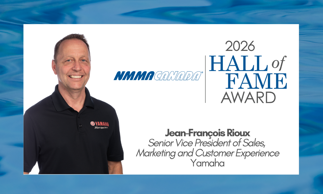 NMMA Canada announced today the induction of industry veteran Jean-François Rioux into the NMMA Canada Hall of Fame. Rioux, senior vice president of sales, marketing and customer experience at Yamaha Canada, was recognized during the NMMA Canada State of the Industry Breakfast at the Toronto International Boat Show.