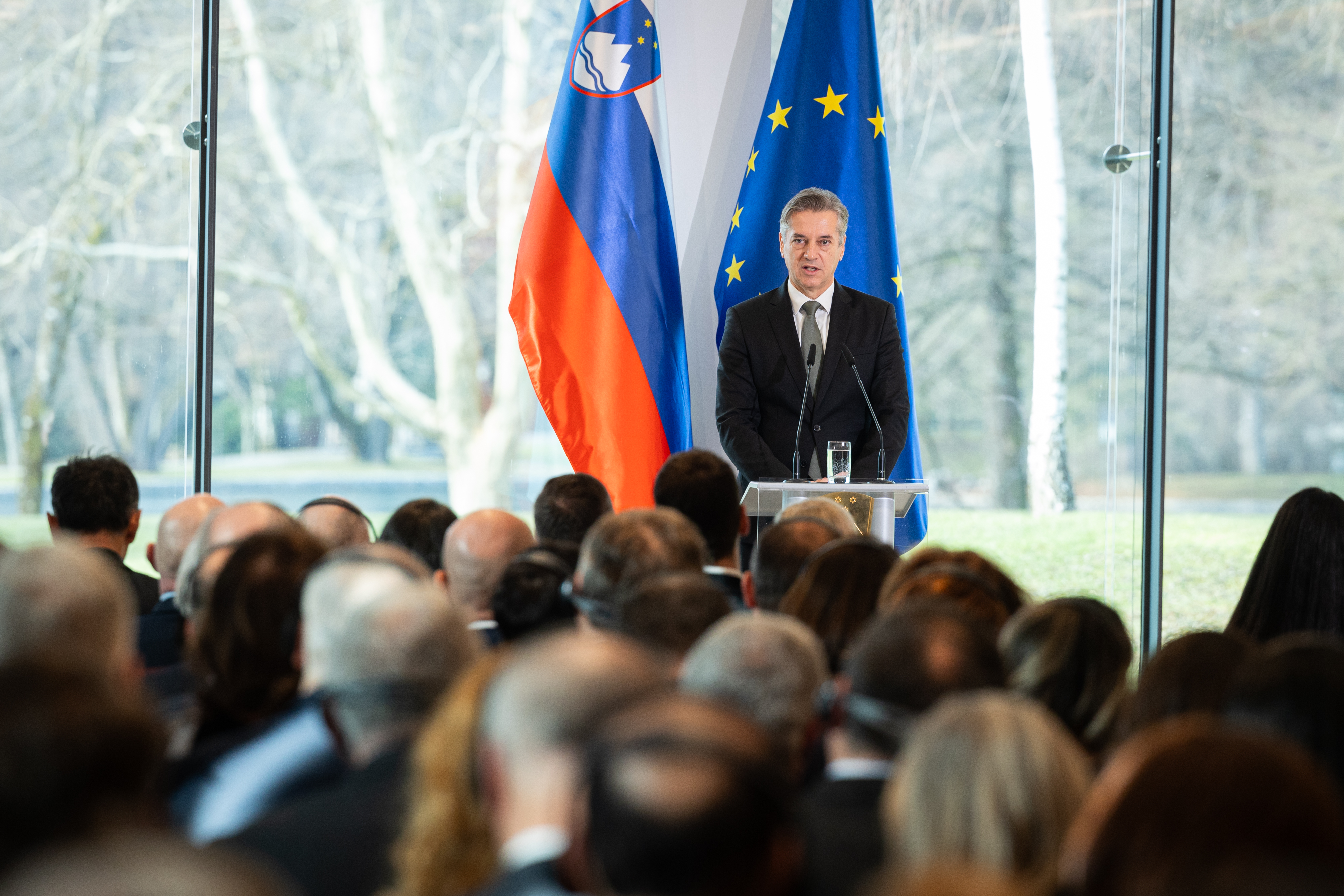 V nadaljevanju se je dotaknil aktivnosti Slovenije v mednarodni politiki, ne nazadnje je naša država v preteklem letu predsedovala Varnostnemu svetu Združenih narodov. »To predsedovanje bilo predvsem v znamenju treh kriz, treh vojn, treh katastrof človeštva. Katastrofe v Ukrajini, v Gazi in v Sudanu. Ob tem bi rad prižgal žarek upanja, saj resnično verjamem, da bomo v naslednjih dneh mogoče končno dočakali zaustavitev nečloveških ravnanj izraelske vojske v Gazi in dočakali podpis premirja,« je povedal premier.