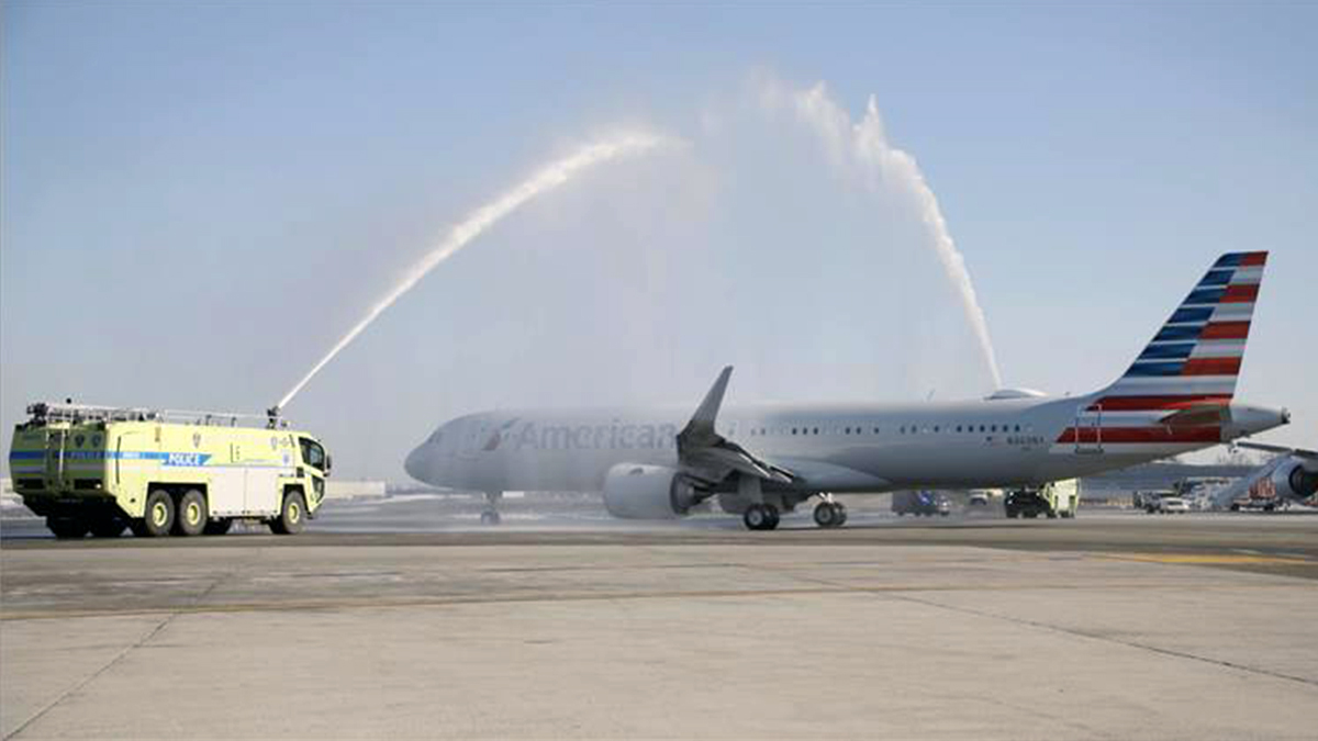 American's inaugural A321XLR flight from JFK to LAX received a water cannon salute upon departure.
