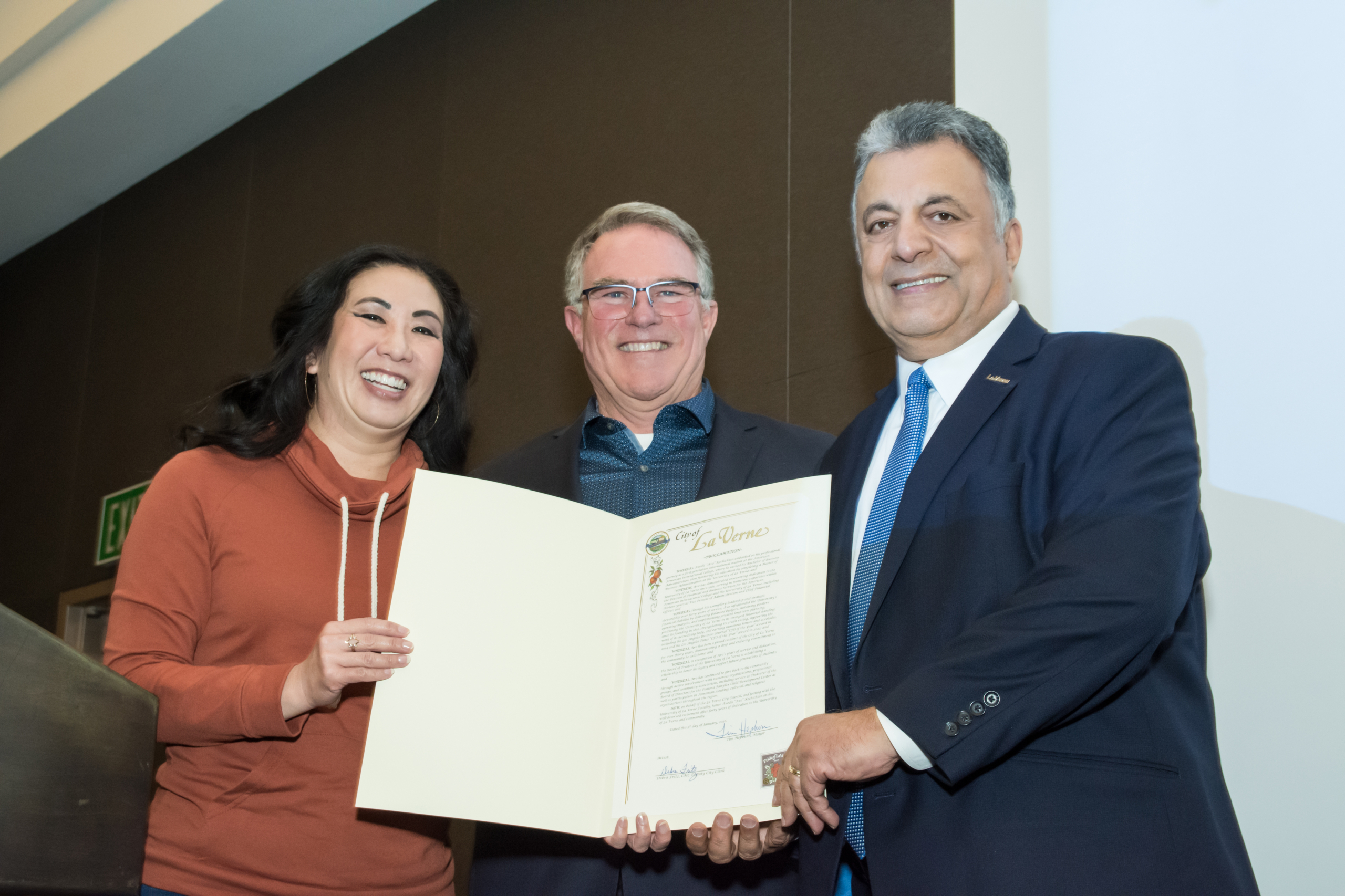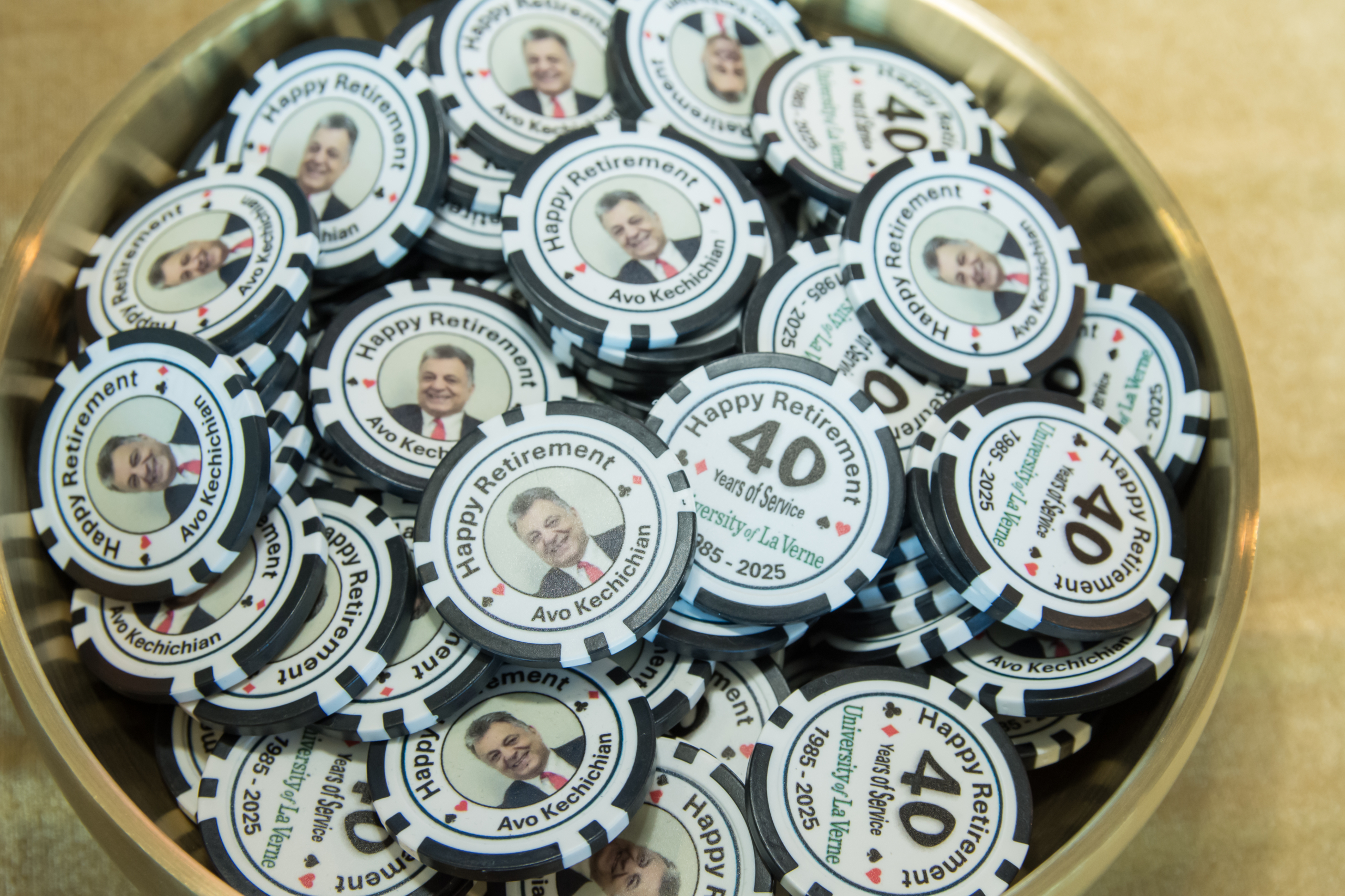 The celebration took place in the Abraham Campus Center Ballroom, where colleagues offered tributes and Kechichian's sons, Alex and Chris, delivered a surprise salute. He also received a city proclamation from La Verne City Council members Steven Johnson and Wendy Lau, a member of the ULV Board of Trustees.