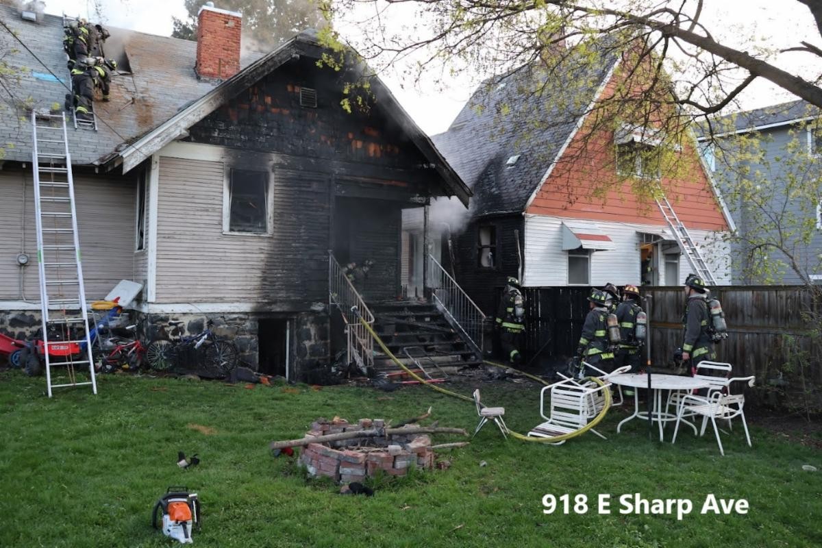 At 6:40 a.m. today, firefighters were dispatched to a home just east of Jack & Dan's Bar & Grill following reports of a house fire. Engine and Truck 2 from the Bemiss neighborhood arrived within four minutes and encountered heavy fire at the rear of 918 East Sharp Ave, which was spreading to the neighboring home to the east. A second-alarm assignment was immediately requested.