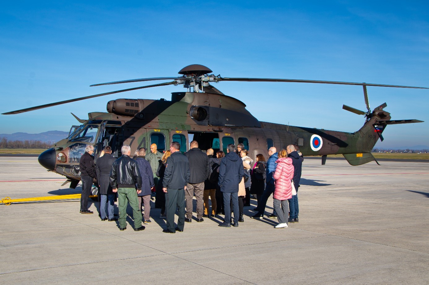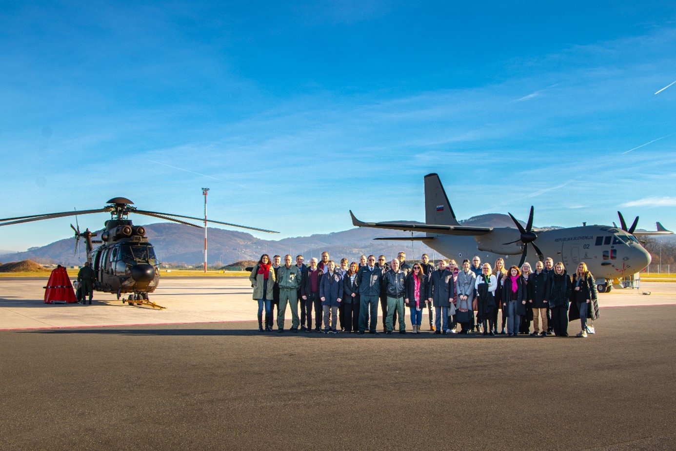 Representatives of all countries exchanged information on crisis preparedness and response plans, agreeing on the need to strengthen cooperation further. During the visit to the Jernej Molan Barracks, experiences of cooperating with the armed forces were shared, followed by tours of the C-27J Spartan aircraft and the AS 532 AL Cougar helicopter. Both aircraft are also used for evacuation.