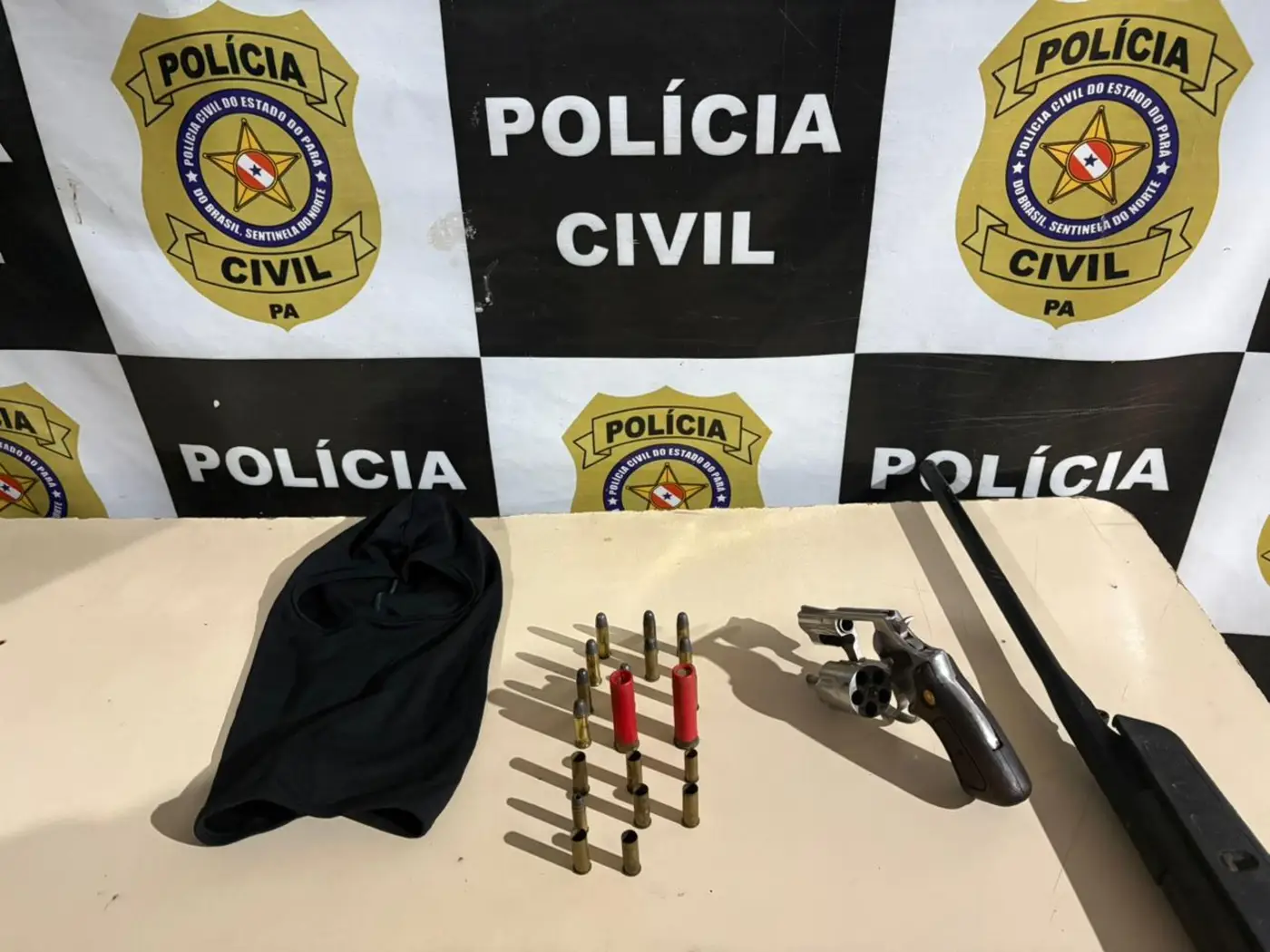 Durante o cumprimento do mandado de prisão, um dos investigados foi encontrado na posse de um dos suspeitos, uma espingarda calibre .22 e um revólver calibre .22, além de 22 munições de calibre .38 e .32 intactas, deflagradas e picotadas. Ele foi autuado em flagrante por porte de arma de fogo e munições. O material foi conduzido à Delegacia de Eldorado e passará por perícias.