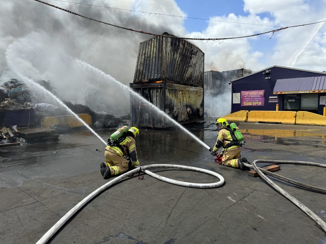 Fire and Rescue NSW (FRNSW) crews are currently battling a large fire in a metal recycling complex in Villawood.
