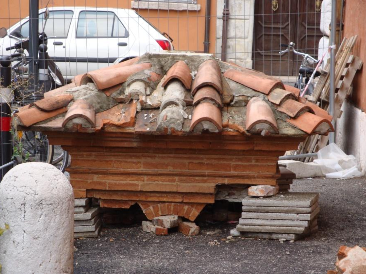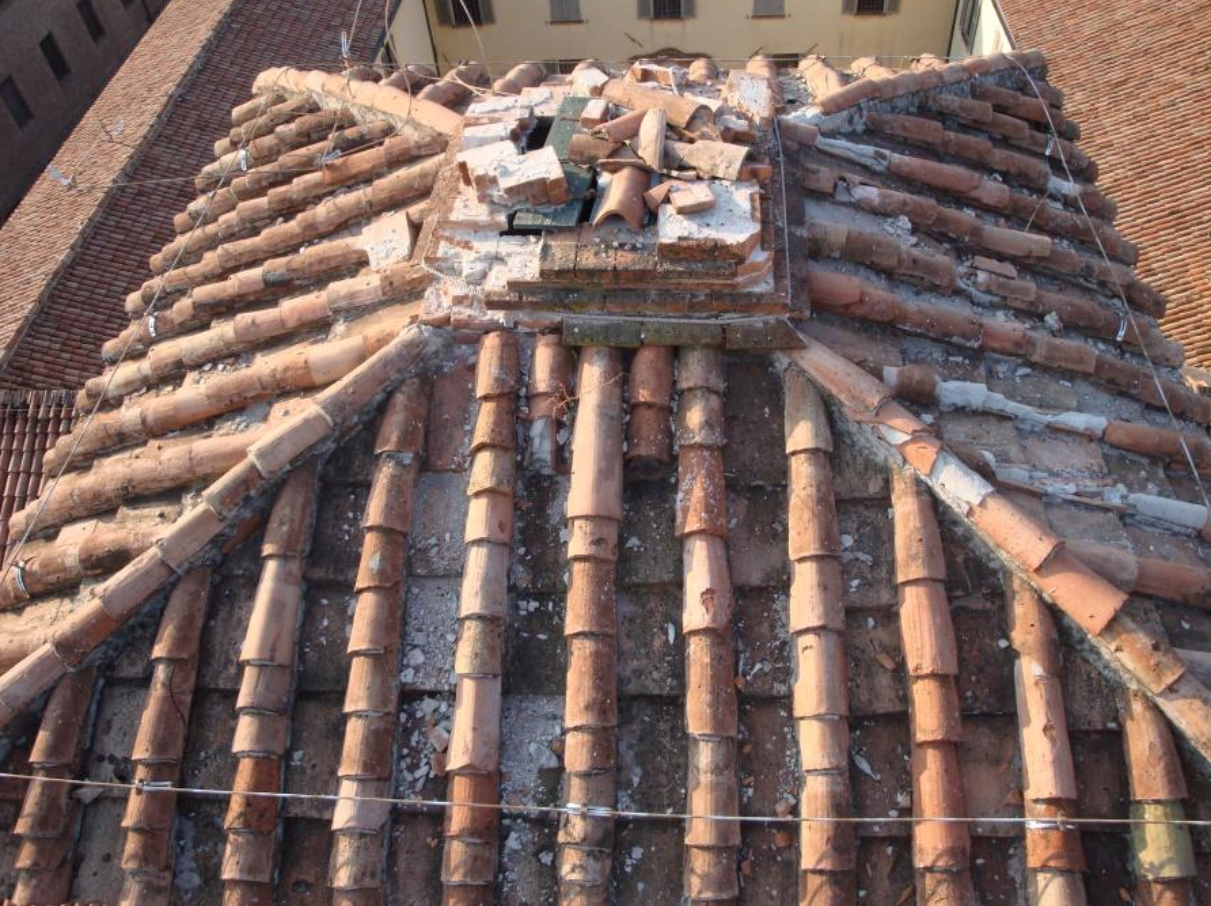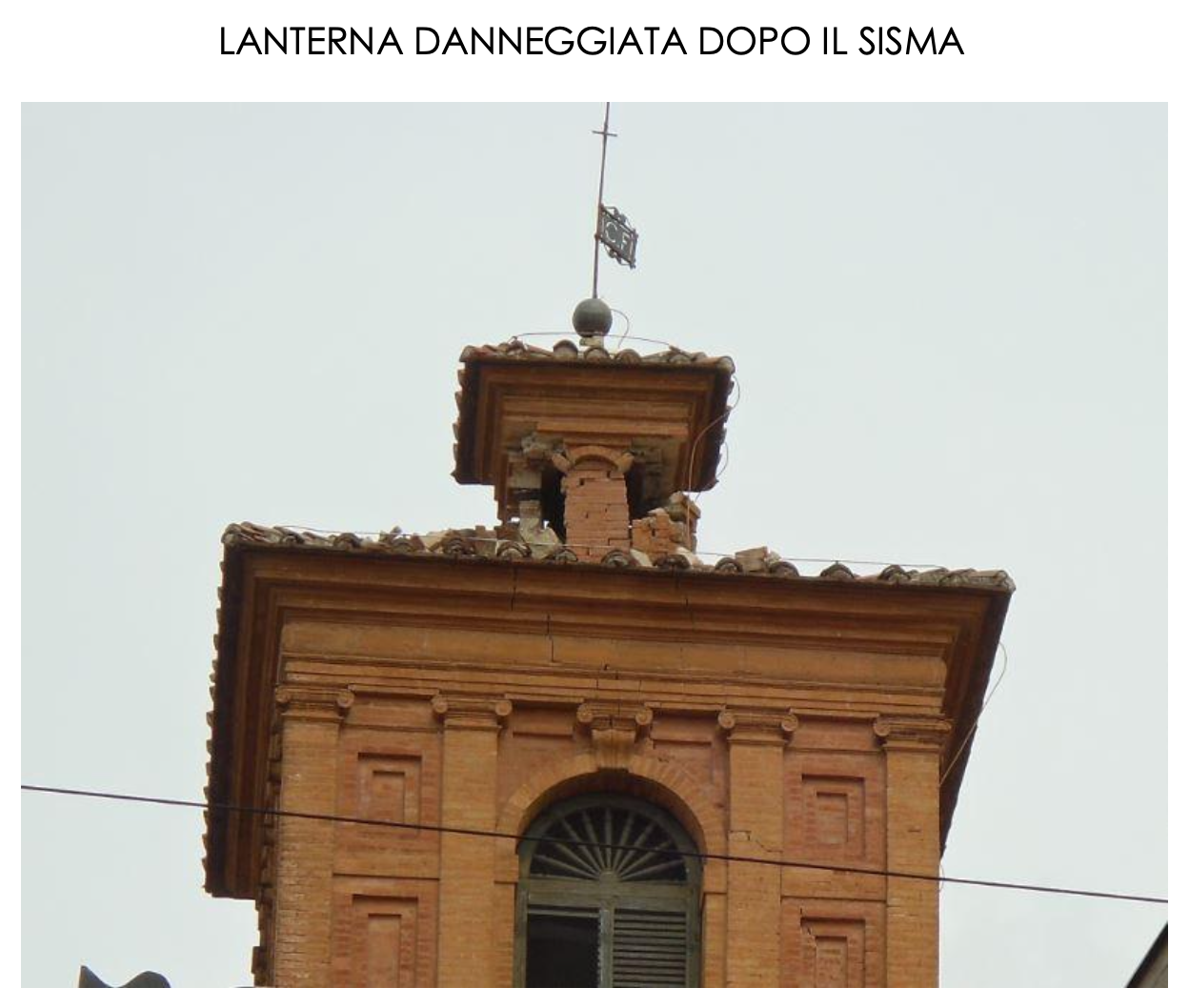 --In foto lanterna danneggiata dal sisma e ricollocazione oggi restaurata