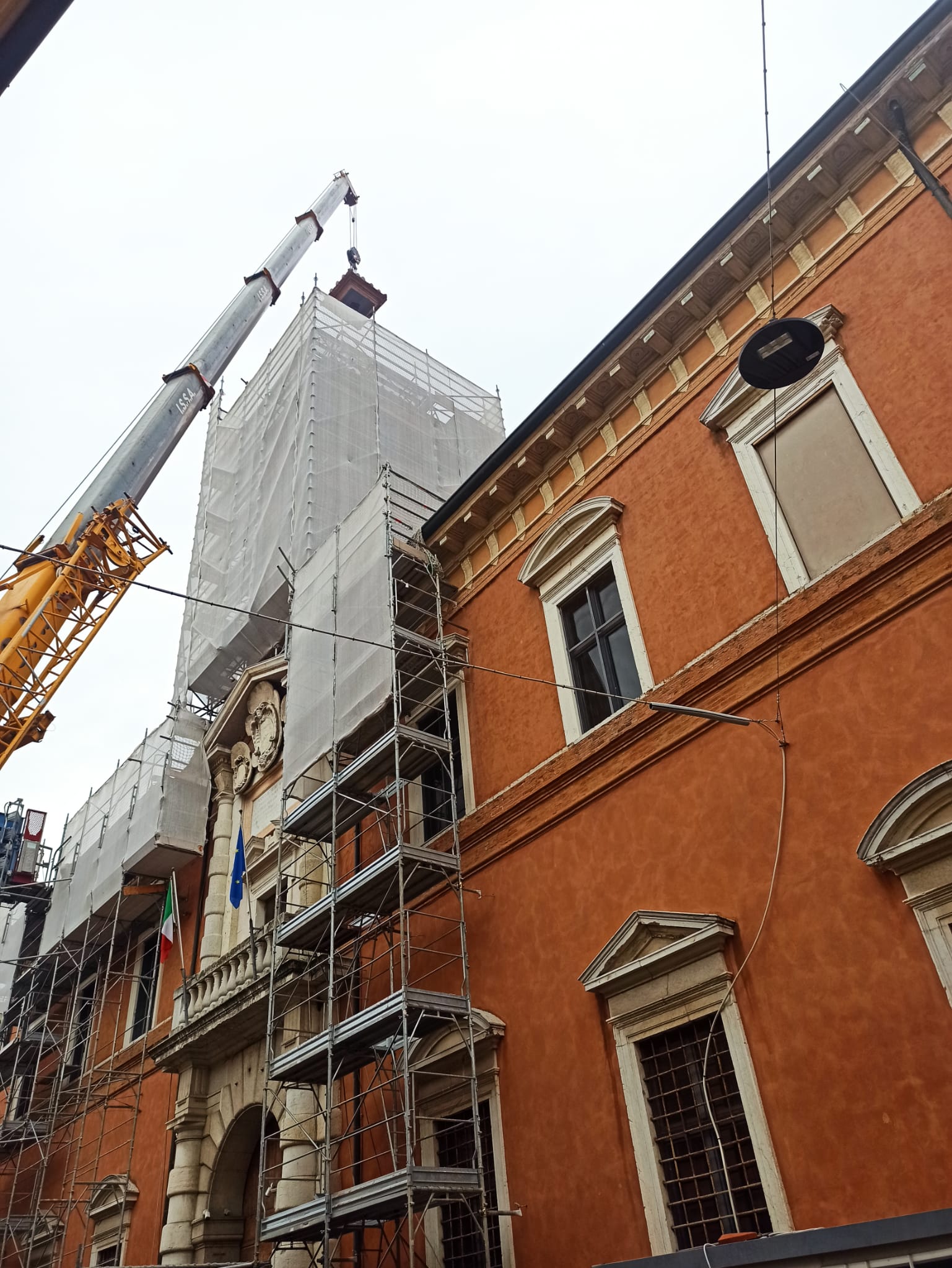 PALAZZO PARADISO: RIPOSIZIONATA OGGI SULLA TORRETTA LA LANTERNA DANNEGGIATA DAL TERREMOTO. GULINELLI: "SIMBOLO DELLA RINASCITA POST SISMA"