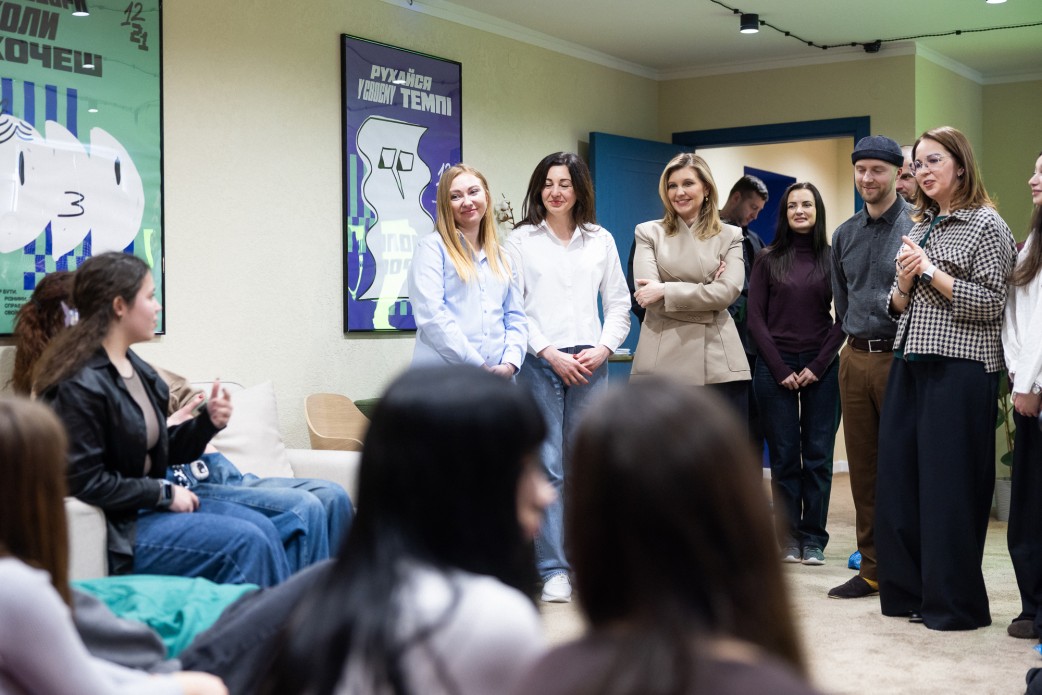 The First Lady of Ukraine, together with the team of the Olena Zelenska Foundation, visited the "12-21" youth space in Khmelnytskyi. This is one of the first spaces in the network that the Foundation is developing for teenagers and young people aged 12 to 21.