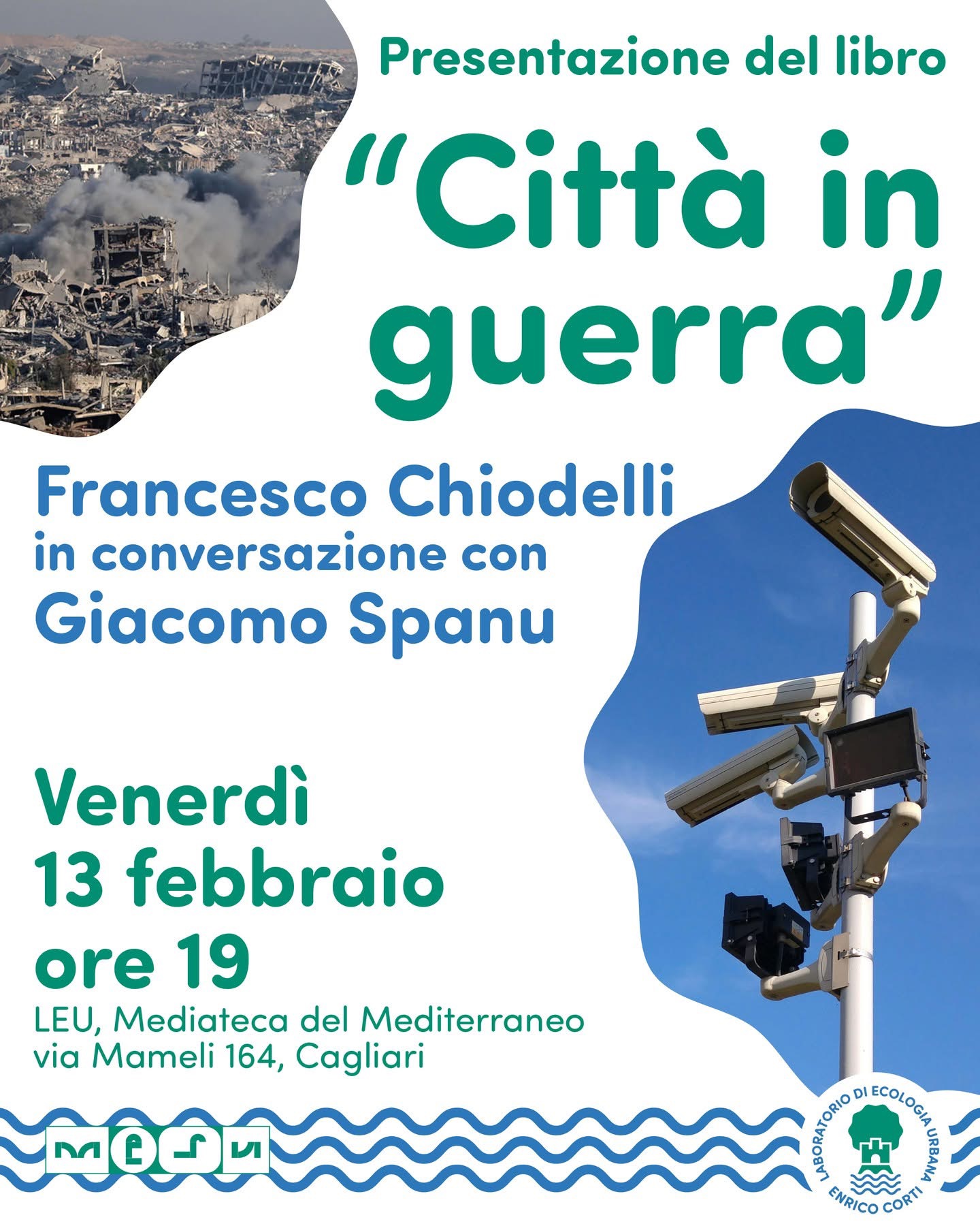 Il primo incontro si terrà venerdì 13 febbraio alle 19 presso il Laboratorio di Ecologia Urbana "Enrico Corti" alla Mediateca del Mediterraneo (via Mameli 164), con la presentazione del libro di Francesco Chiodelli, "Città in guerra. Appunti di geopolitica urbana" (Bollati Boringhieri, 2026). A partire da casi come Gaza, Sarajevo, Falluja, Mogadiscio, New York, ma anche Milano, Torino e Cagliari, il volume analizza come la guerra non sia più un "altrove", ma entri dentro le città, trasformandone gli spazi, le architetture e le pratiche quotidiane. L'autore, professore di Geografia economica e politica all'Università di Torino, dialogherà con Giacomo Spanu, ricercatore dell'Università di Palermo. L'incontro è gratuito e aperto alla cittadinanza, con un linguaggio accessibile e spazio per il confronto pubblico.