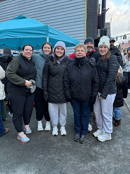 Dann participates in the 2025 Turkey Trot with his family, shown from the left, Marcie (wife), Addy (daughter), Sydney (daughter), Kathy (mom), Dann and Quin, daughter