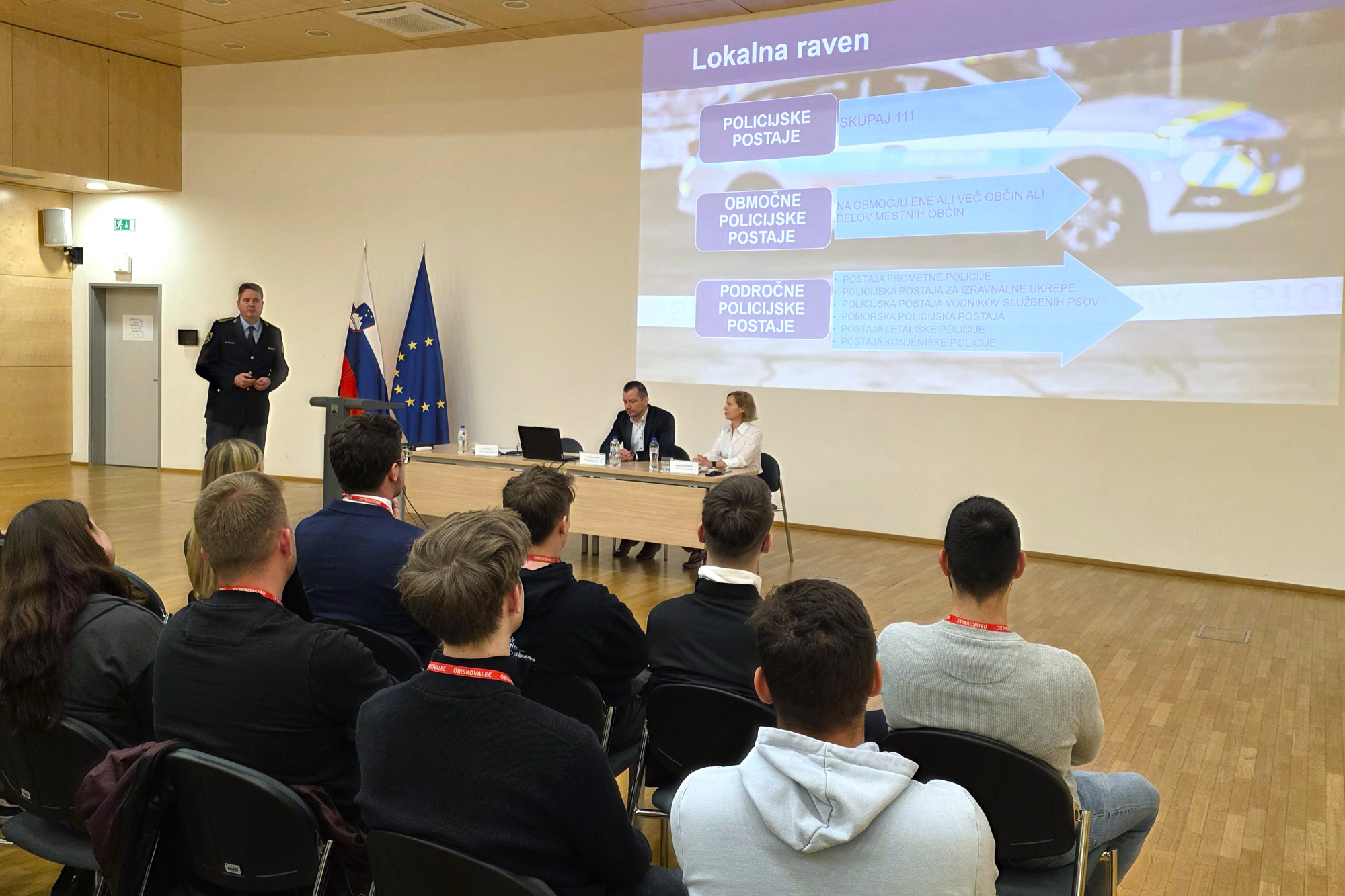 V nadaljevanju je namestnik generalnega direktorja policije Beno Meglič predstavil delo, pristojnosti in organiziranost slovenske policije na regionalni in državni ravni. Povedal je, da se mora policija vseskozi prilagajati na sodobne varnostne izzive in grožnje.