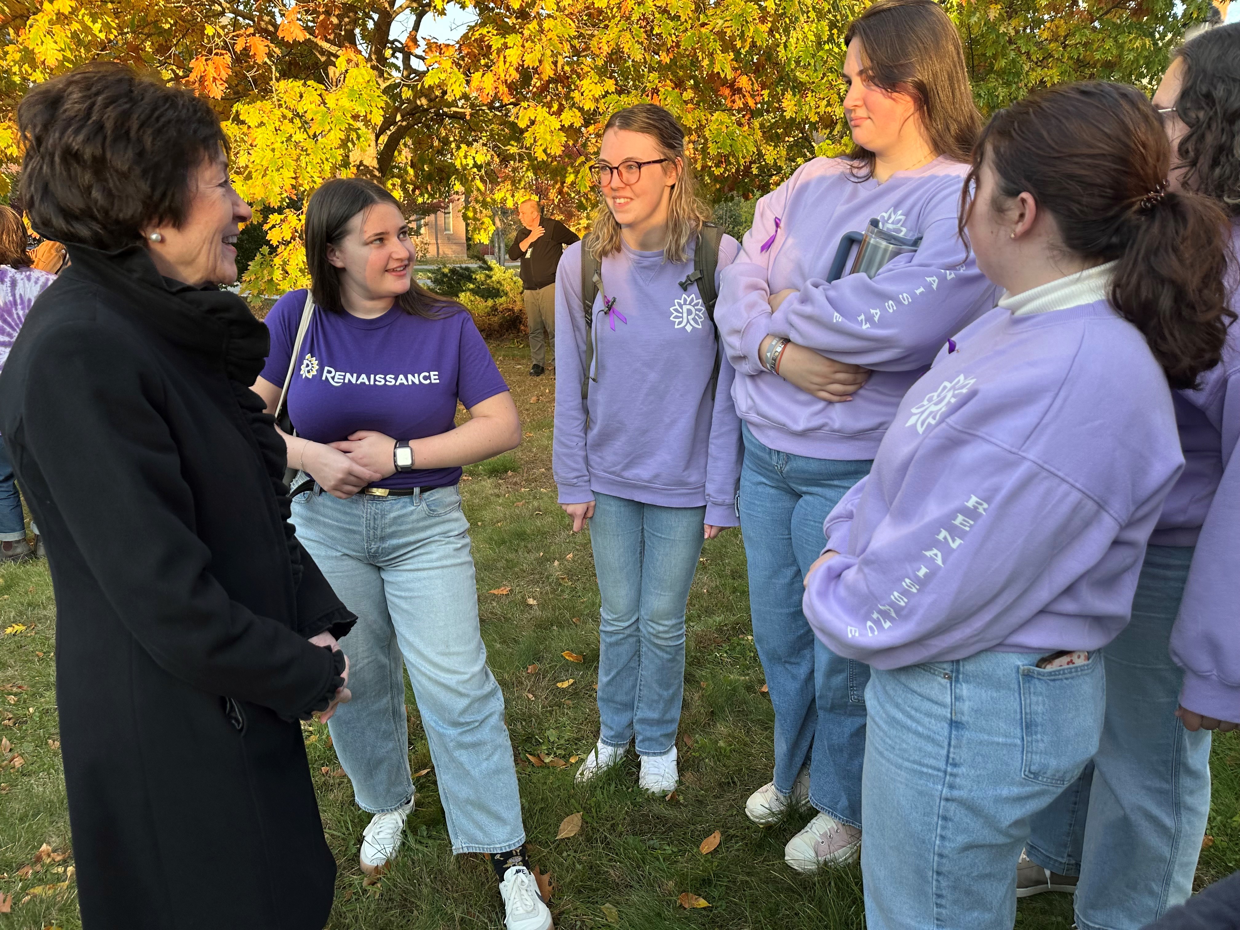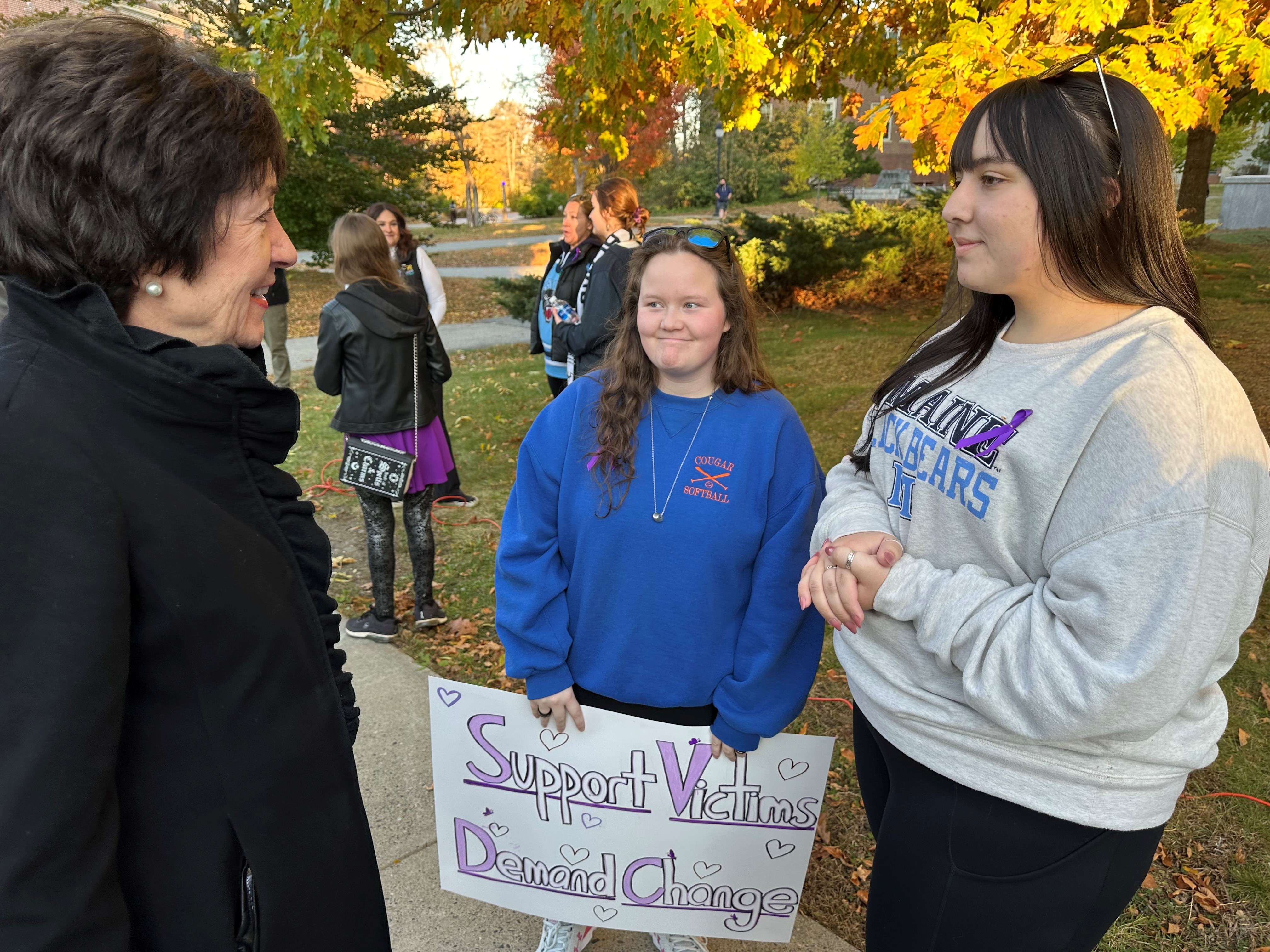 Orono, ME - U.S. Senator Susan Collins spoke at the 11th annual March Against Domestic Violence, which began at the steps of Fogler Library at the University of Maine and continued on to the University Field House. The theme for this year's March, which comes during National Domestic Violence Awareness Month, was "ending domestic violence in our communities."