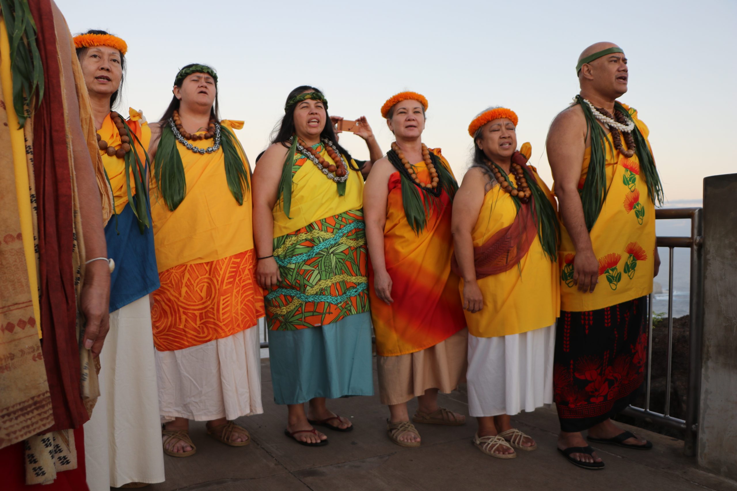 The sunrise ceremony begins with the sounding of the pū in the four cardinal directions, followed by oli led by Sam Gon, Ph.D., of Hālau Mele. At dawn, students of Sensei Kenny Endo from the Taiko Center of the Pacific offer a dynamic taiko performance, echoing across the cliffs and ocean. Together, these voices create a shared moment of intention honoring traditions, welcoming the new year and reaffirming our kuleana to Hawaiʻi's coasts.
