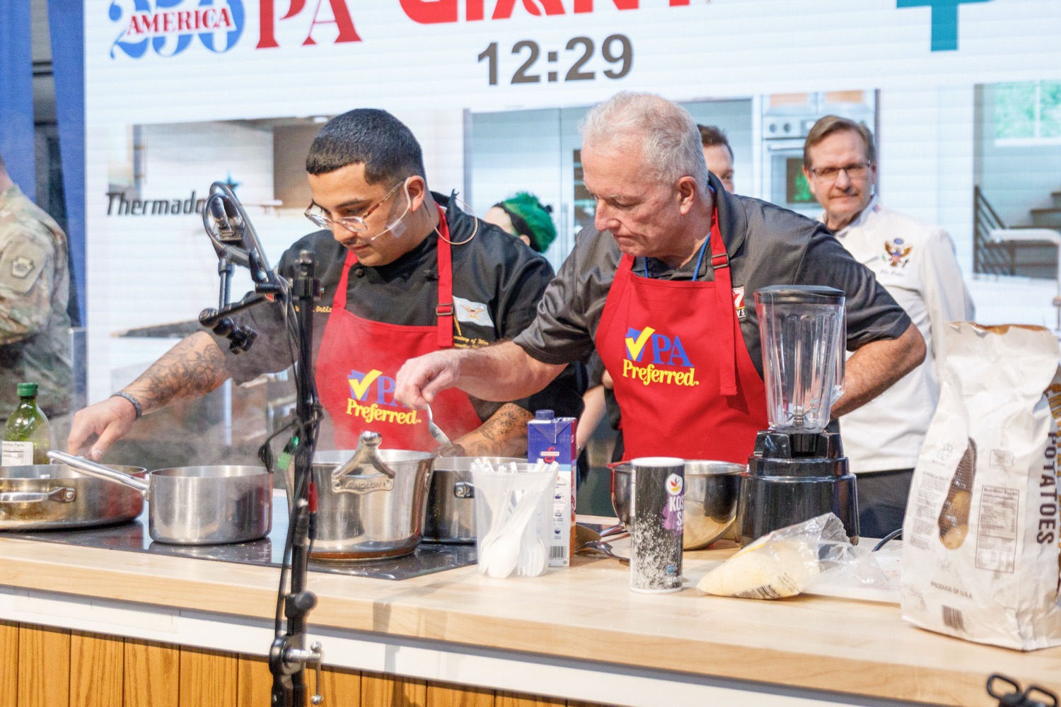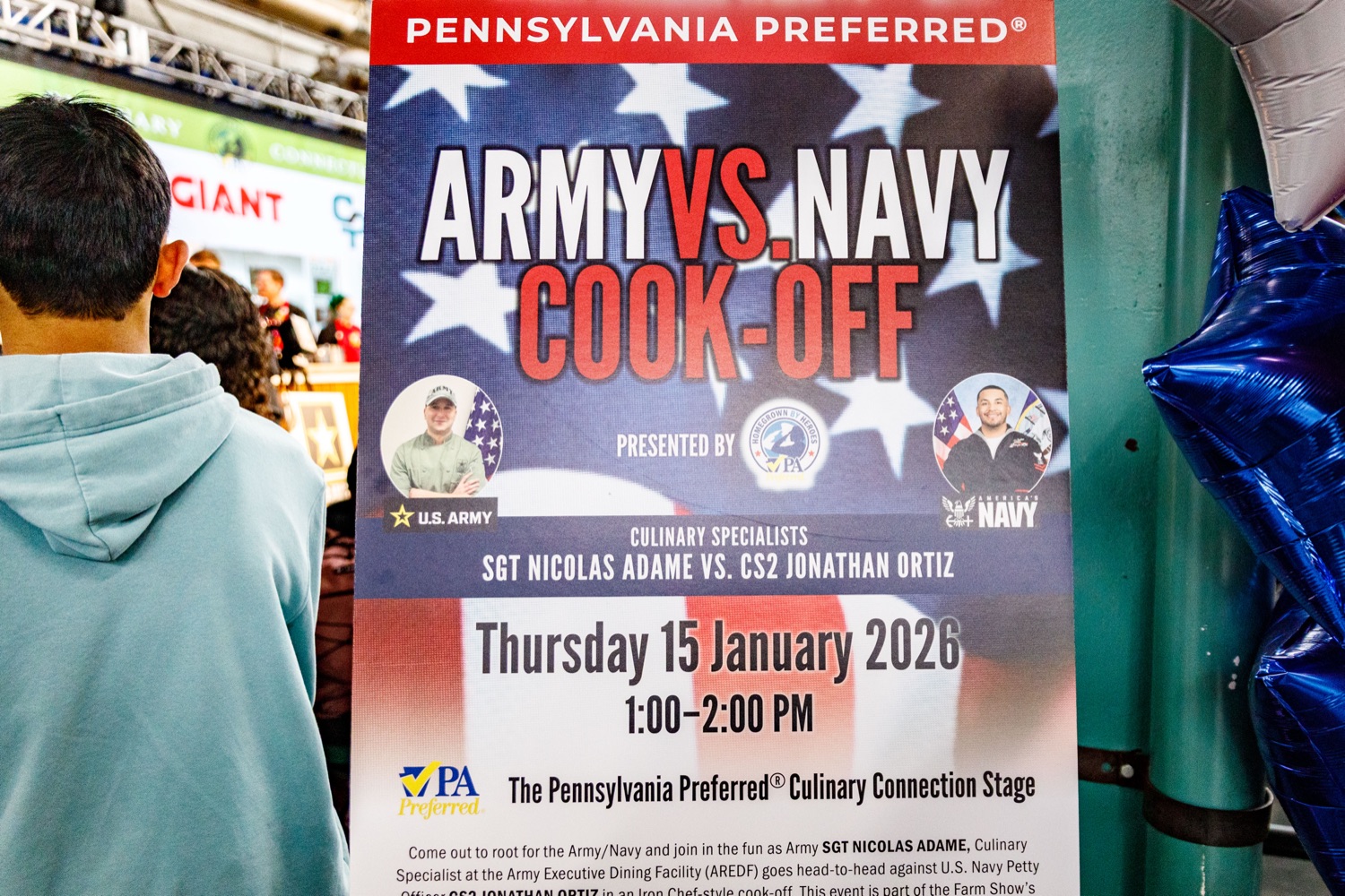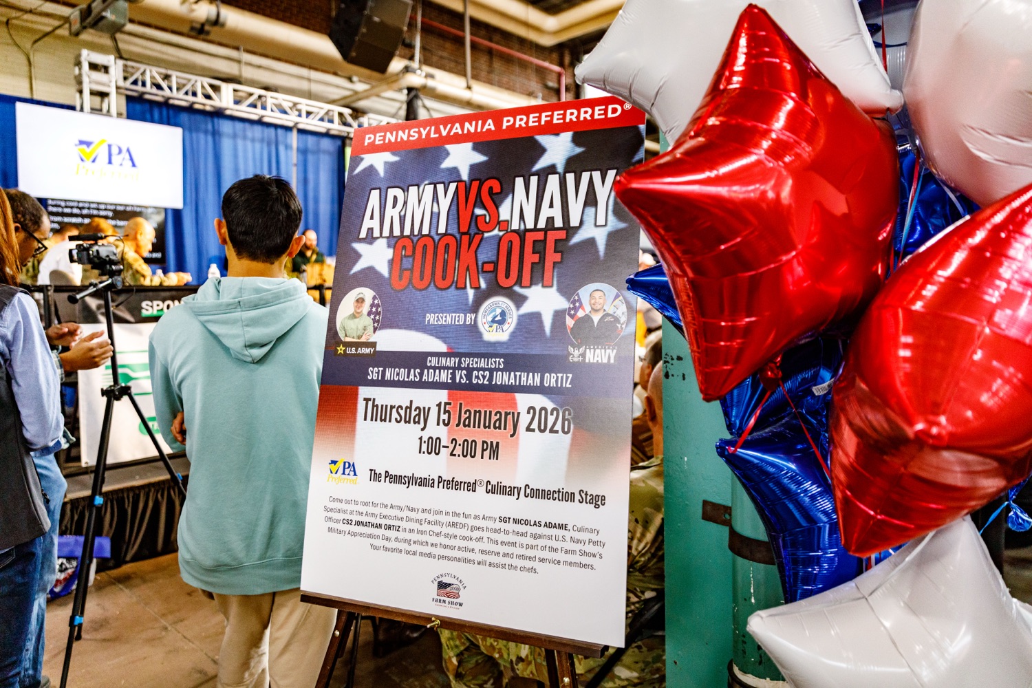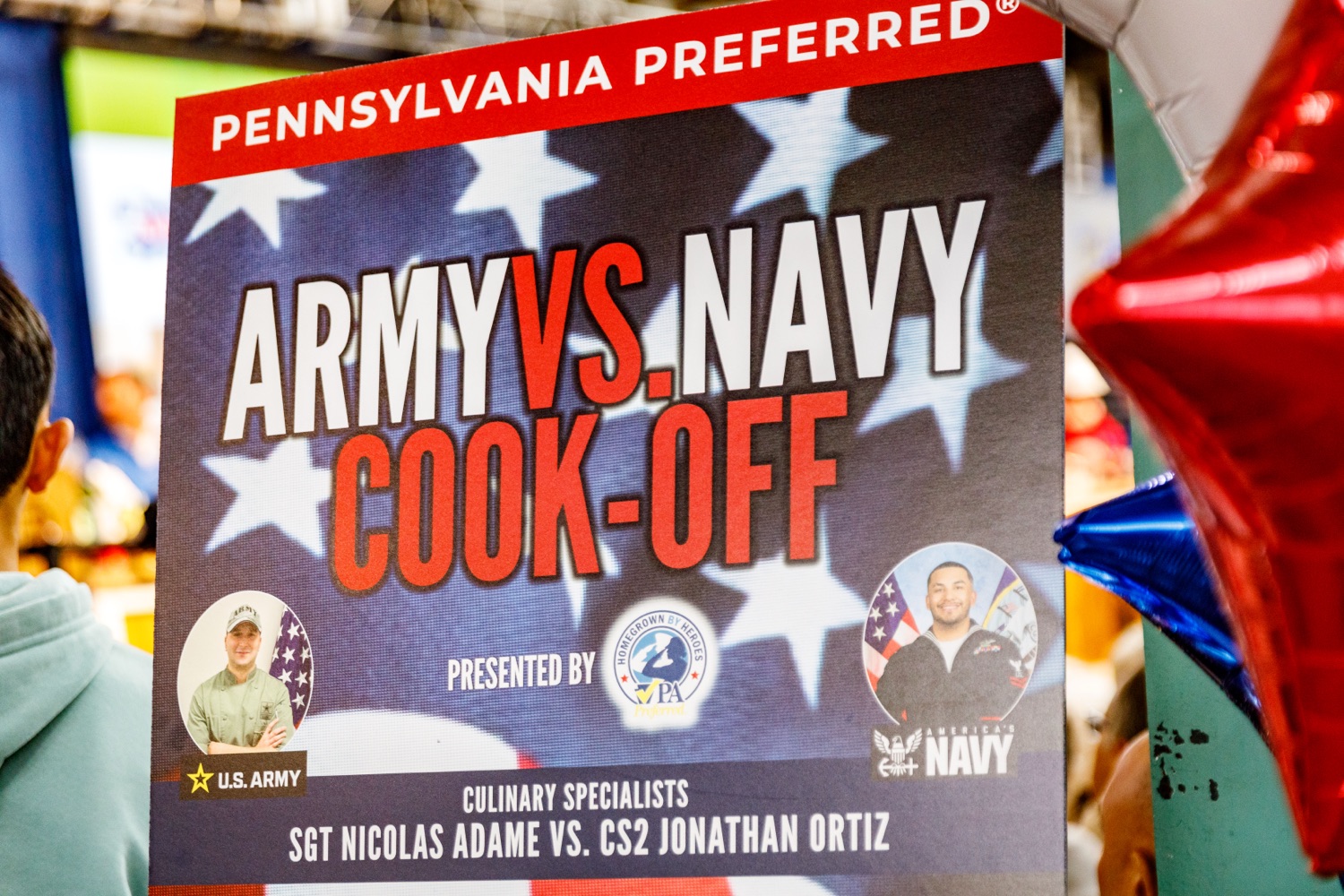 Military Appreciation Day continued with a spirited Army vs. Navy Cookoff at the PA Preferred® Culinary Connection Stage, featuring Army Sgt. Nicolas Adame and Navy Culinary Specialist Second Class Jonathan Ortiz.
