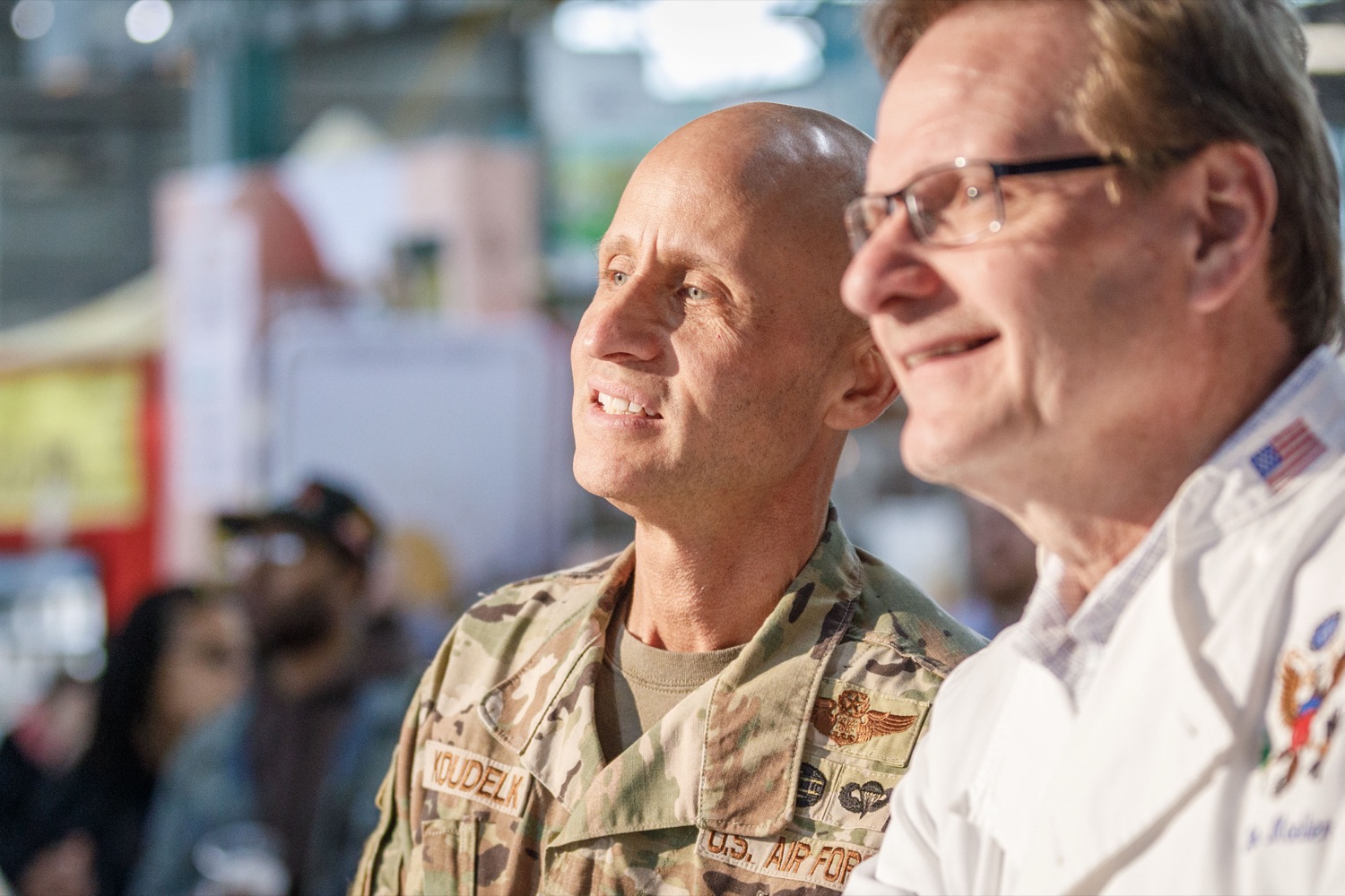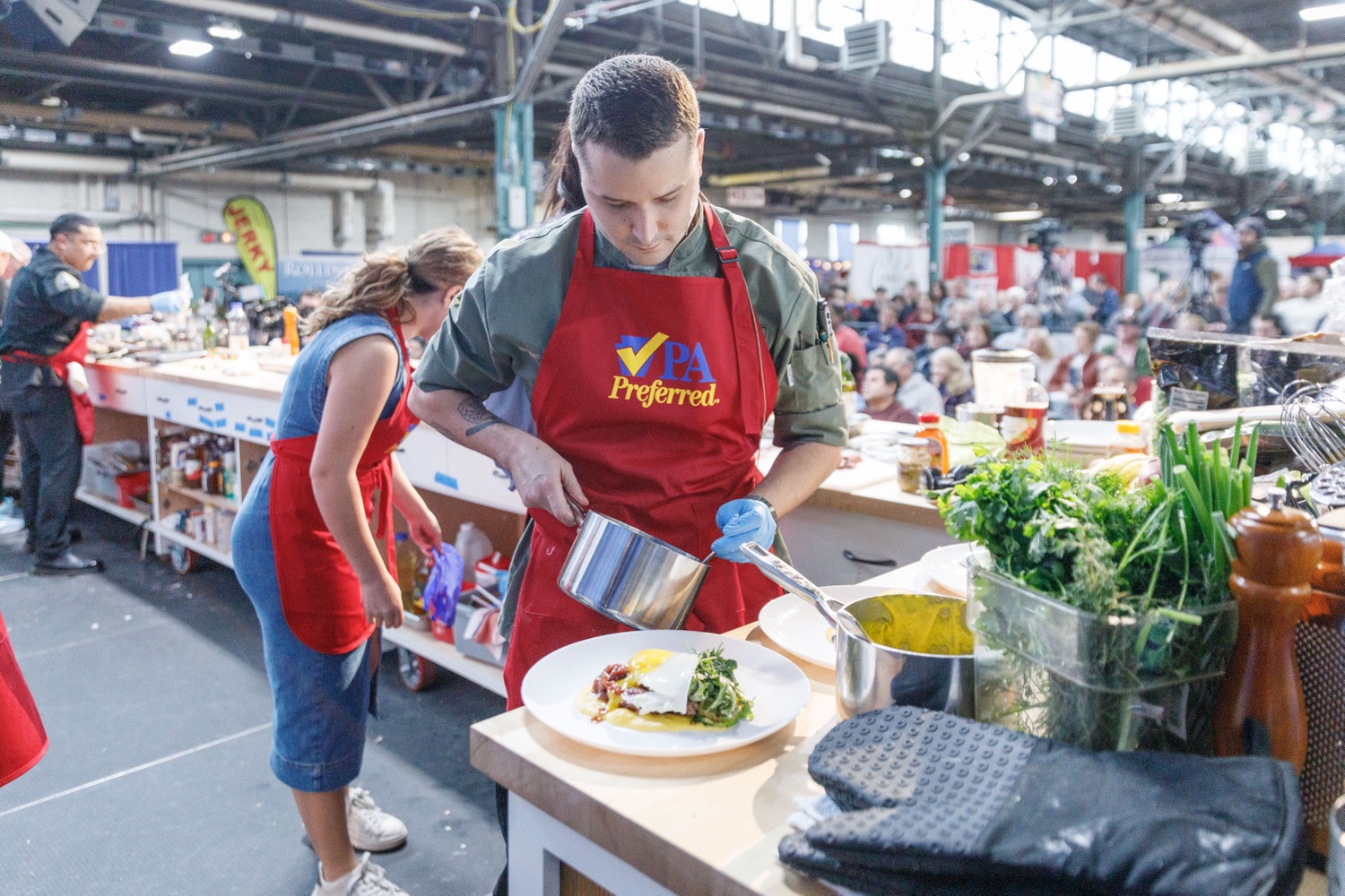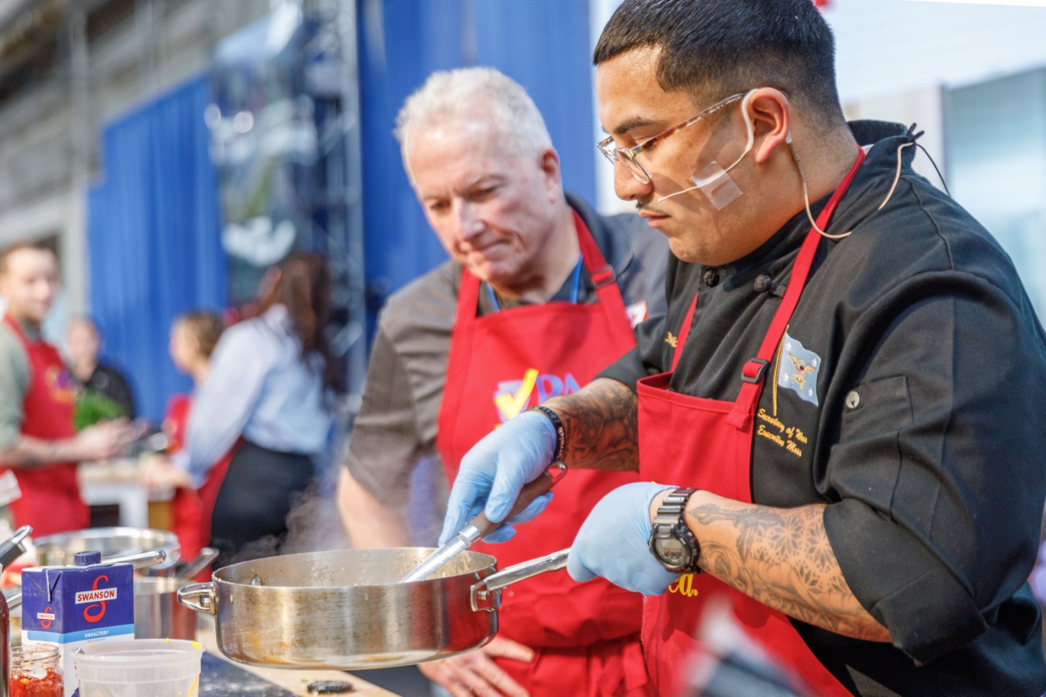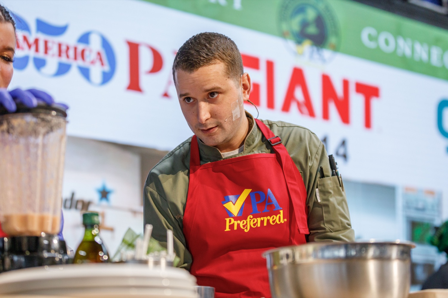 Military Appreciation Day continued with a spirited Army vs. Navy Cookoff at the PA Preferred® Culinary Connection Stage, featuring Army Sgt. Nicolas Adame and Navy Culinary Specialist Second Class Jonathan Ortiz.