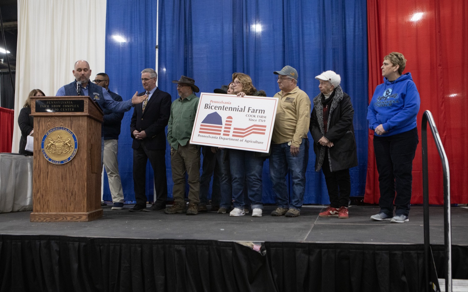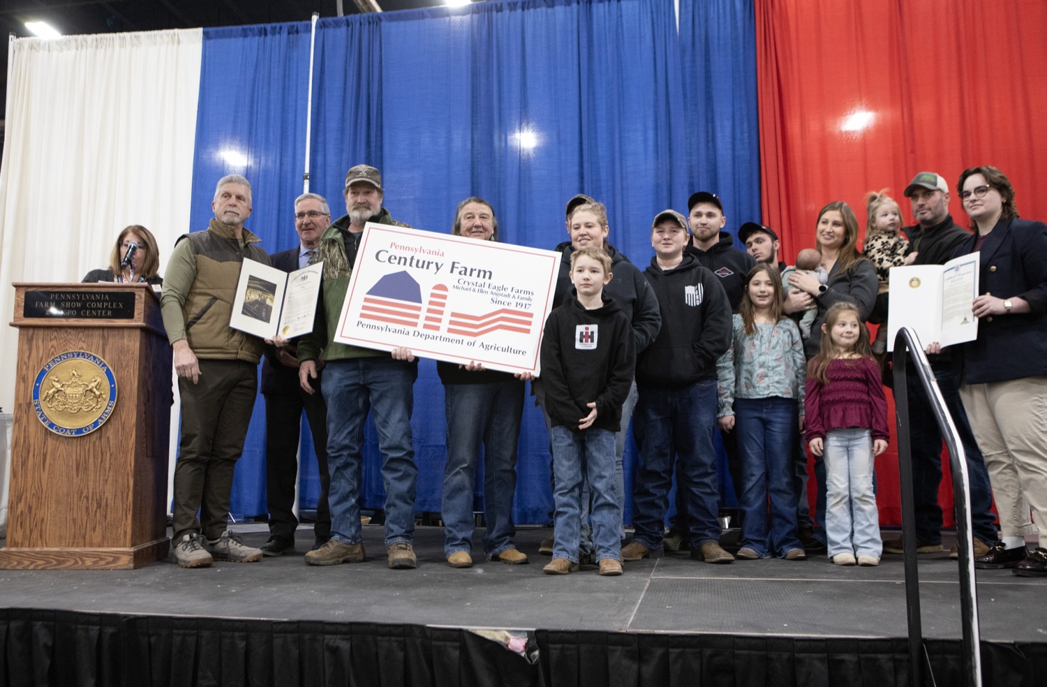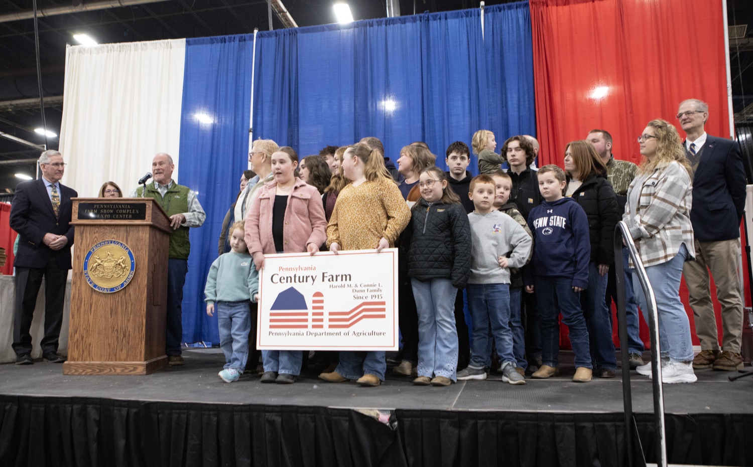On the seventh day of the 2026 Pennsylvania Farm Show, Lieutenant Governor Austin Davis and Agriculture Secretary Russell Redding designated 11 Bicentennial and Centennial farms - honoring seven families whose farms have remained in the same family for 100 years, and recognizing four Bicentennial farms, including one of the state's oldest, dating back to the Revolutionary War.