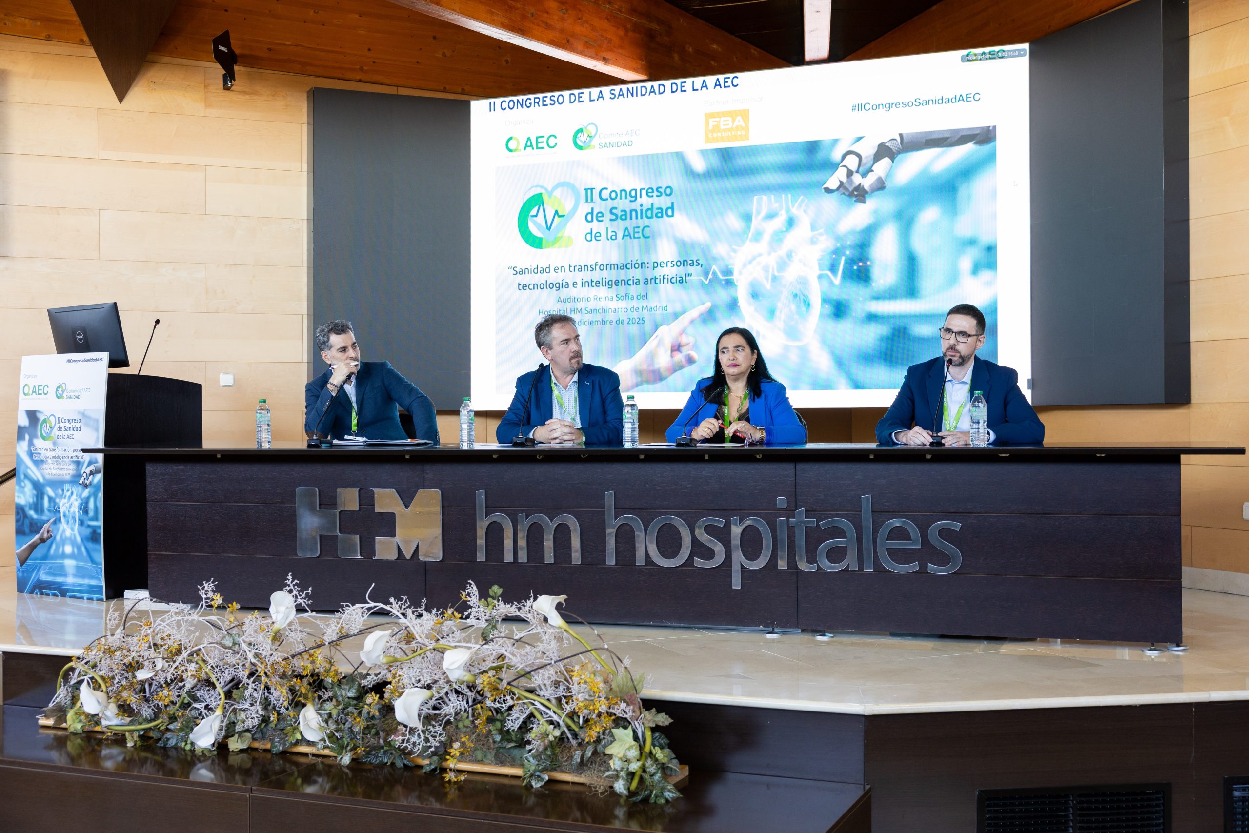 La primera mesa coloquio, titulada "Aplicación de la IA en el día a día de la Sanidad", reunió a referentes del sector como Mª Ángeles García Rescalvo, gerente, Hospital Virgen de las Nieves), Rafael Ordóñez Marmolejo, Adjunto Oncología Radioterápica, (Hospital Virgen de la Victoria de Málaga) y David Castro González, director I+D+i, Grupo Miranza, bajo la moderación de Andrés García, vicepresidente de la Comunidad AEC IA.