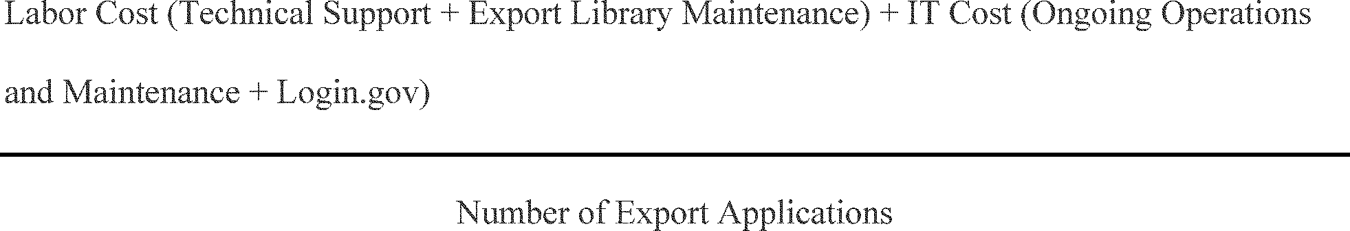 As published in FSIS' final rule, Electronic Export Application and Certification Charge; Flexibility in the Requirements for Export Inspection Marks, Devices, and Certificates; Egg Products Export Certification (81 FR 42225, June 29, 2016), the Electronic Export Application Fee Formula is: