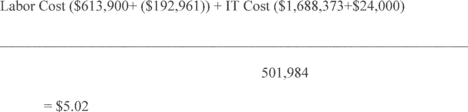 [FY 2025 Total Direct Travel and Operating Costs/(Total Regular hours + Total Overtime hours + Total Holiday hours) ($45,247,802/16,897,173)] = $2.68 + ($2.68 * 2.2% (2026 Inflation) = $2.74.