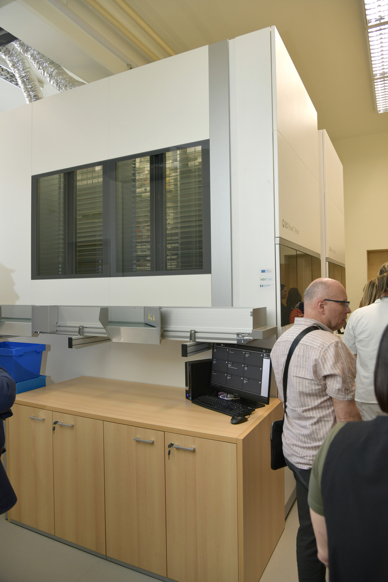 Sledil je še prerez traku skladiščnega robota za zdravila v bolnišnični lekarni. Vrednost investicije znaša 381.668,22 evra z DDV. Od tega 309.290,80 evra zagotavlja Evropska unija iz Načrta za okrevanje in odpornost. Trak so slavnostno prerezali ministrica za zdravje dr. Valentina Prevolnik Rupel, pomočnik direktorja za zdravstveno nego Aljoša Juretič in vodja lekarne Sara Kenda.