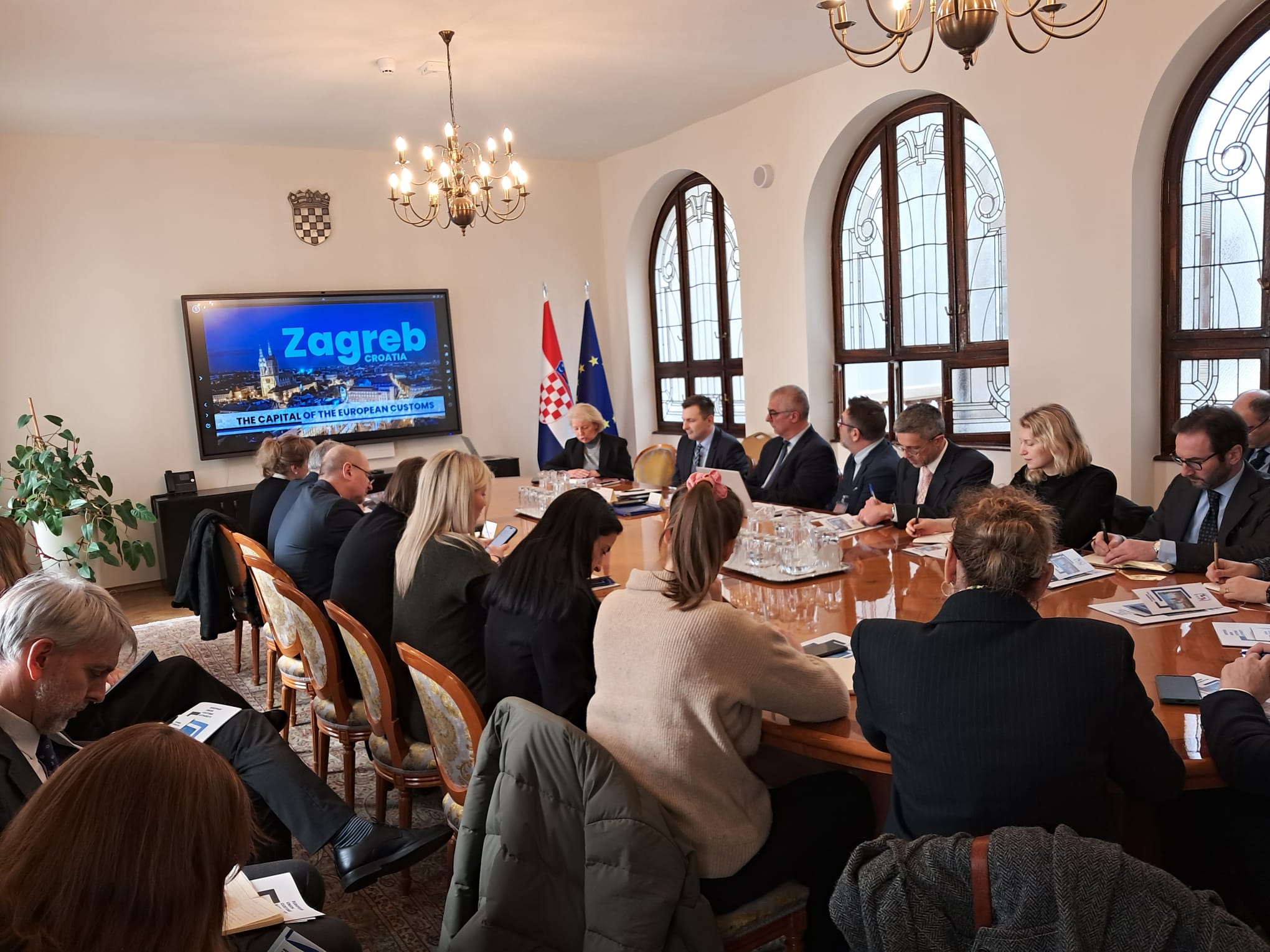 Državna tajnica za Europu Andreja Metelko-Zgombić, ravnatelj Carinske uprave RH Mario Demirović i pomoćnik ravnatelja Carinske uprave RH Miroslav Lučić predstavili su 6. veljače 2026. diplomatima država članica hrvatsku kandidaturu za sjedište budućeg EU carinskog tijela (EUCA).