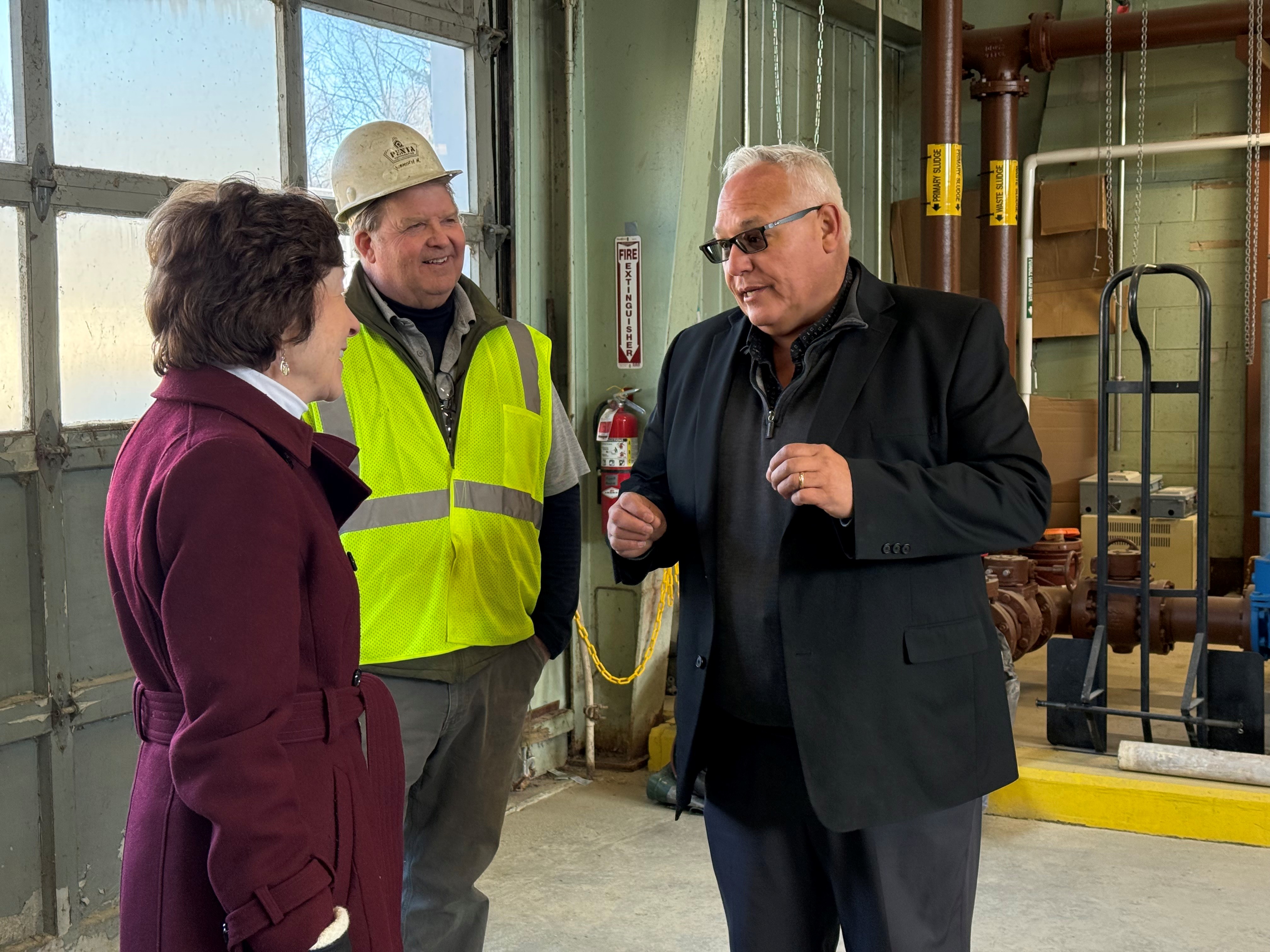 Senator Collins toured the Town's wastewater treatment facility, where major infrastructure improvements are taking place supported by $5 million she secured in 2024. The project will help the system better serve residents while supporting local industry and attracting new businesses.
