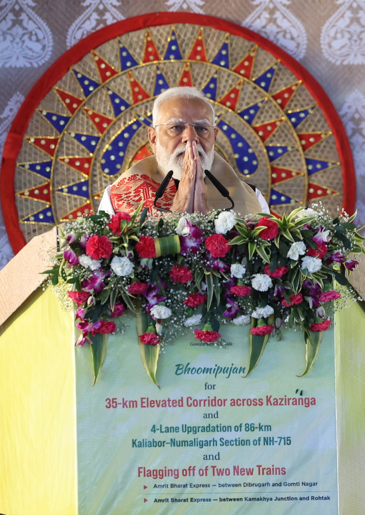 इस बढ़े हुए निवेश से बड़े पैमाने पर इंफ्रास्ट्रक्चर निर्माण हुआ है। नई रेल लाइनें बिछाने से दोहरीकरण और इलेक्ट्रिफिकेशन होने से, रेलवे की क्षमता बढ़ी है, लोगों के लिए सुविधाएं बढ़ी हैं। आज कलियाबोर से जिन तीन नई ट्रेन सेवाओं का शुभारंभ हो रहा है, वे भी असम की रेल कनेक्टिविटी में एक महत्वपूर्ण विस्तार हैं। वंदे भारत स्लीपर ट्रेन, गुवाहाटी को कोलकाता से जोड़ेगी। यह आधुनिक स्लीपर ट्रेन लंबी दूरी की यात्रा को और अधिक आरामदायक बनाएगी। इसके साथ ही दो अमृत भारत एक्सप्रेस ट्रेनों की शुरुआत की जा रही है। इन ट्रेनों के रास्ते में असम, पश्चिम बंगाल, बिहार और उत्तर प्रदेश के कई महत्वपूर्ण स्टेशन शामिल हैं, जिससे लाखों यात्रियों को सीधा लाभ मिलेगा। ये ट्रेनें असम के व्यापारियों को नए बाजारों से जोड़ेंगी, छात्र, शिक्षा के नए अवसरों तक आसानी से पहुंच सकेंगे। और असम के लोगों के लिए देश के अलग-अलग हिस्सों में आना-जाना सरल हो जाएगा। कनेक्टिविटी का ये विस्तार भरोसा पैदा करता है, कि नॉर्थ ईस्ट अब विकास के हाशिए पर नहीं है। नॉर्थ ईस्ट अब दूर नहीं रहा, नॉर्थ ईस्ट अब दिल के भी पास है, दिल्ली के भी पास है।