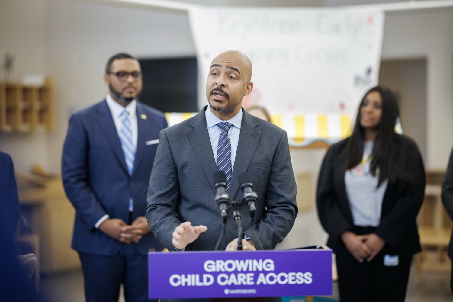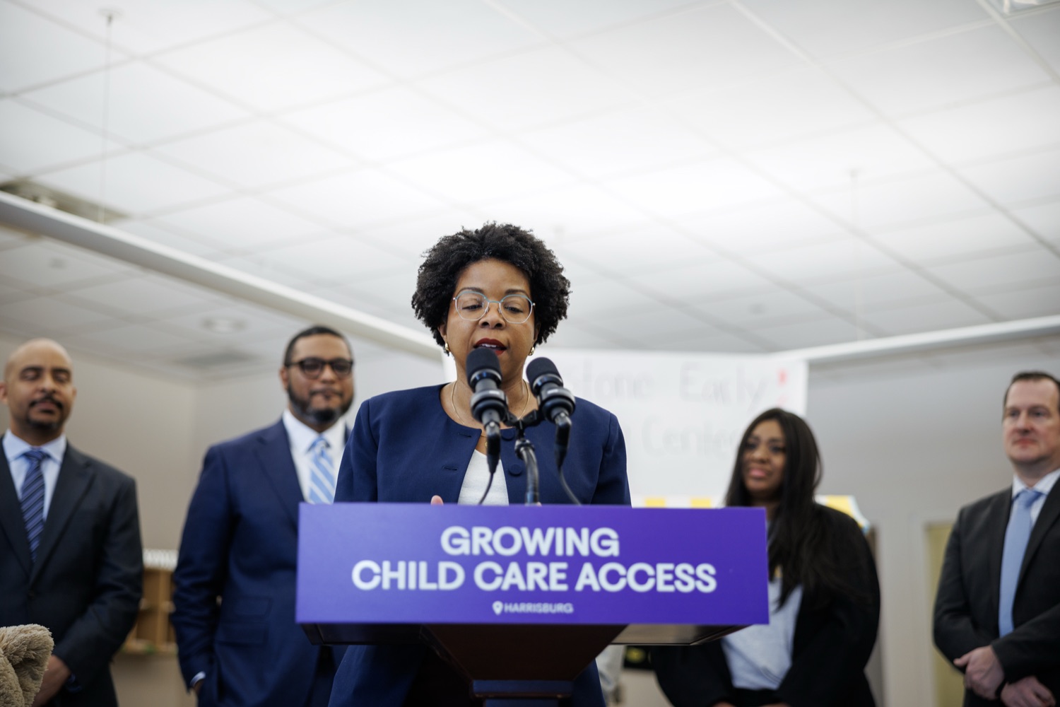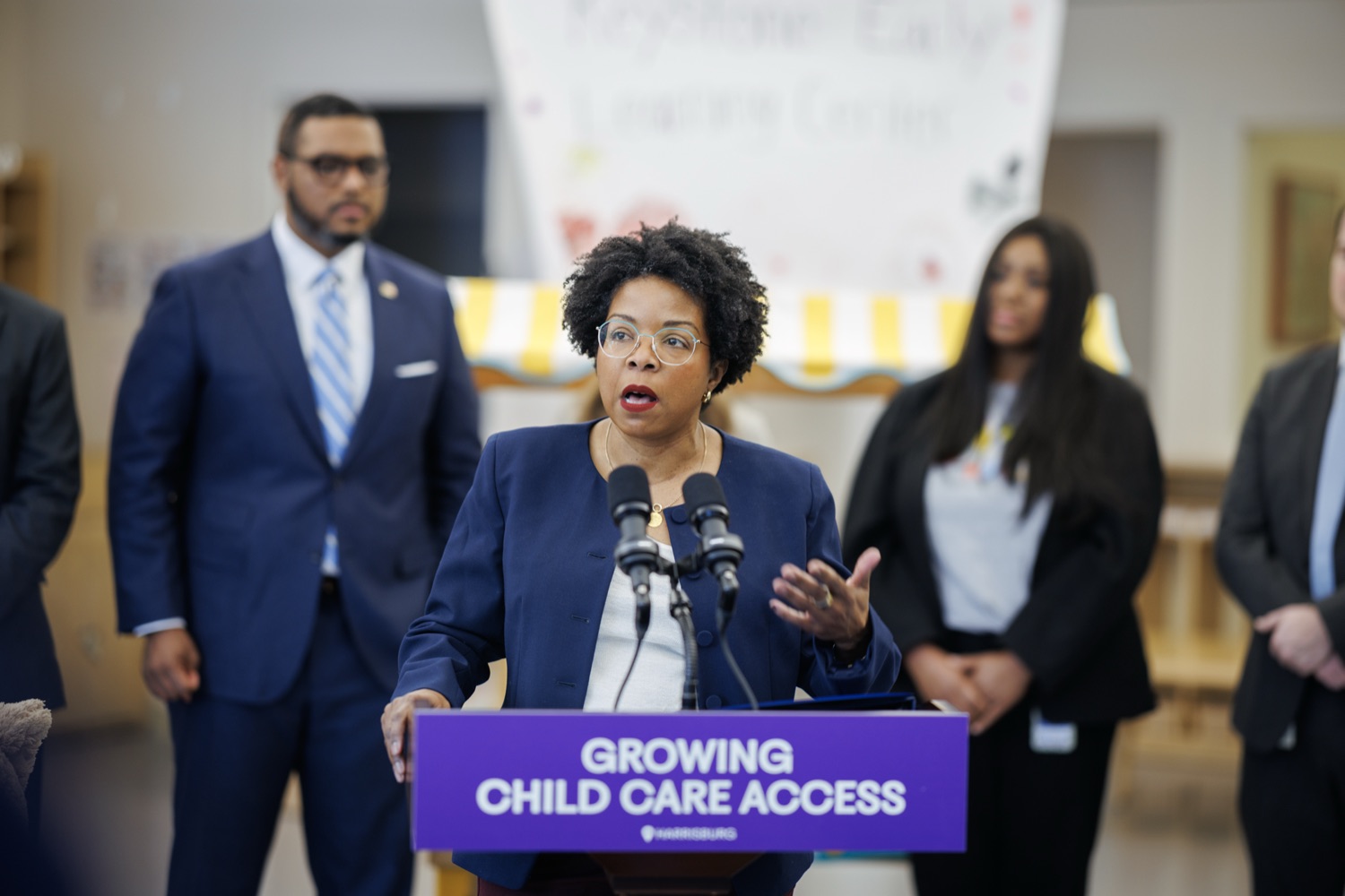 Lieutenant Governor Austin DavisNeil Weaver - Secretary, PA Dept. Office of Administration Reggie McNeil - Secretary, PA Dept, of General Services Kimberly Barrow - Vice Chair, PA Public Utility Commission Katie McGowan - President, Keystone Early Learning Center Parent's Association
