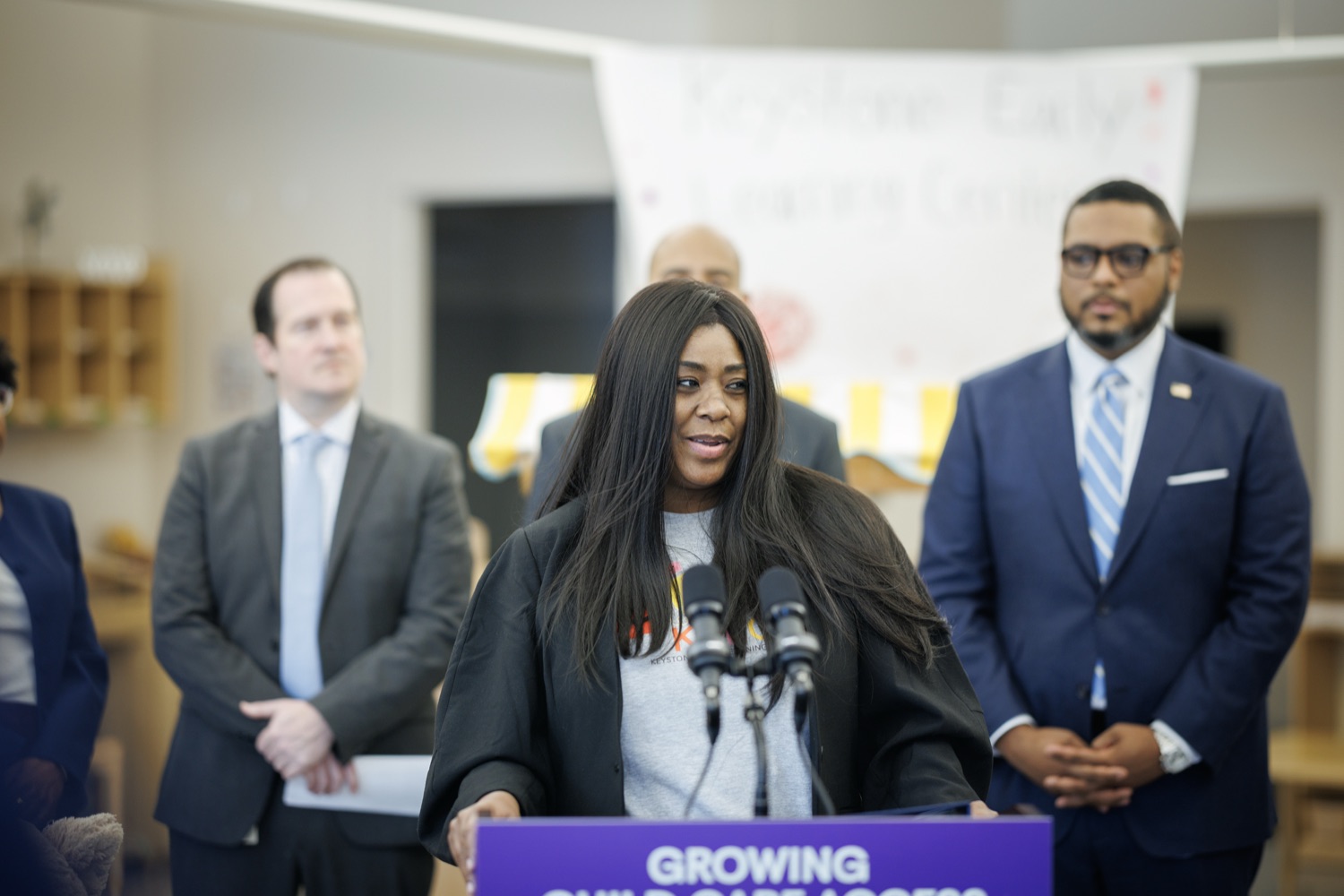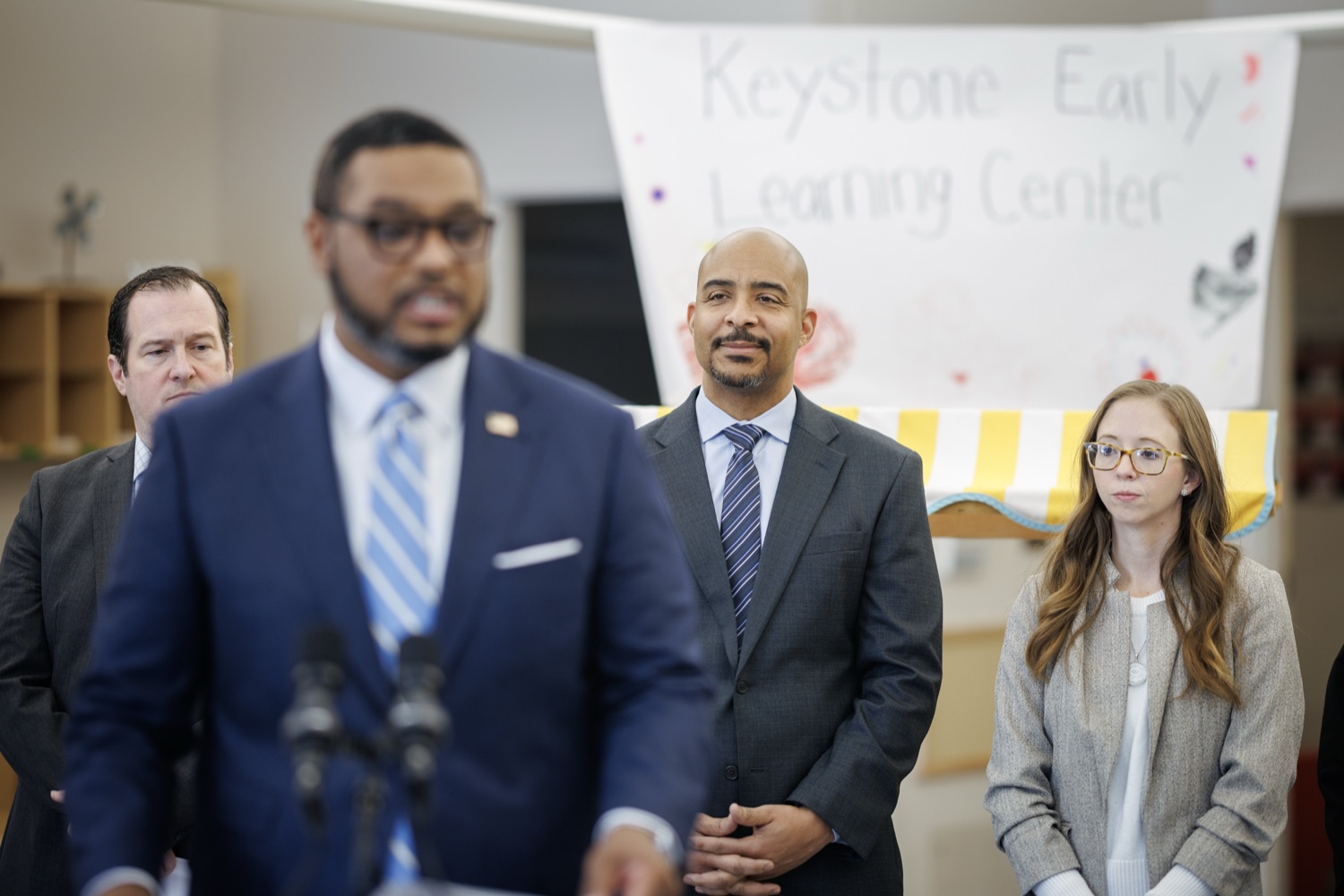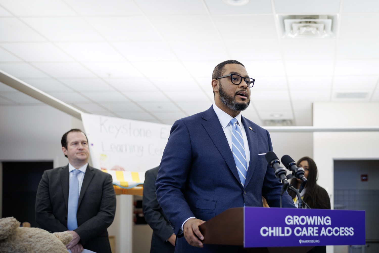 Lieutenant Governor Austin DavisNeil Weaver - Secretary, PA Dept. Office of Administration Reggie McNeil - Secretary, PA Dept, of General Services Kimberly Barrow - Vice Chair, PA Public Utility Commission Katie McGowan - President, Keystone Early Learning Center Parent's Association