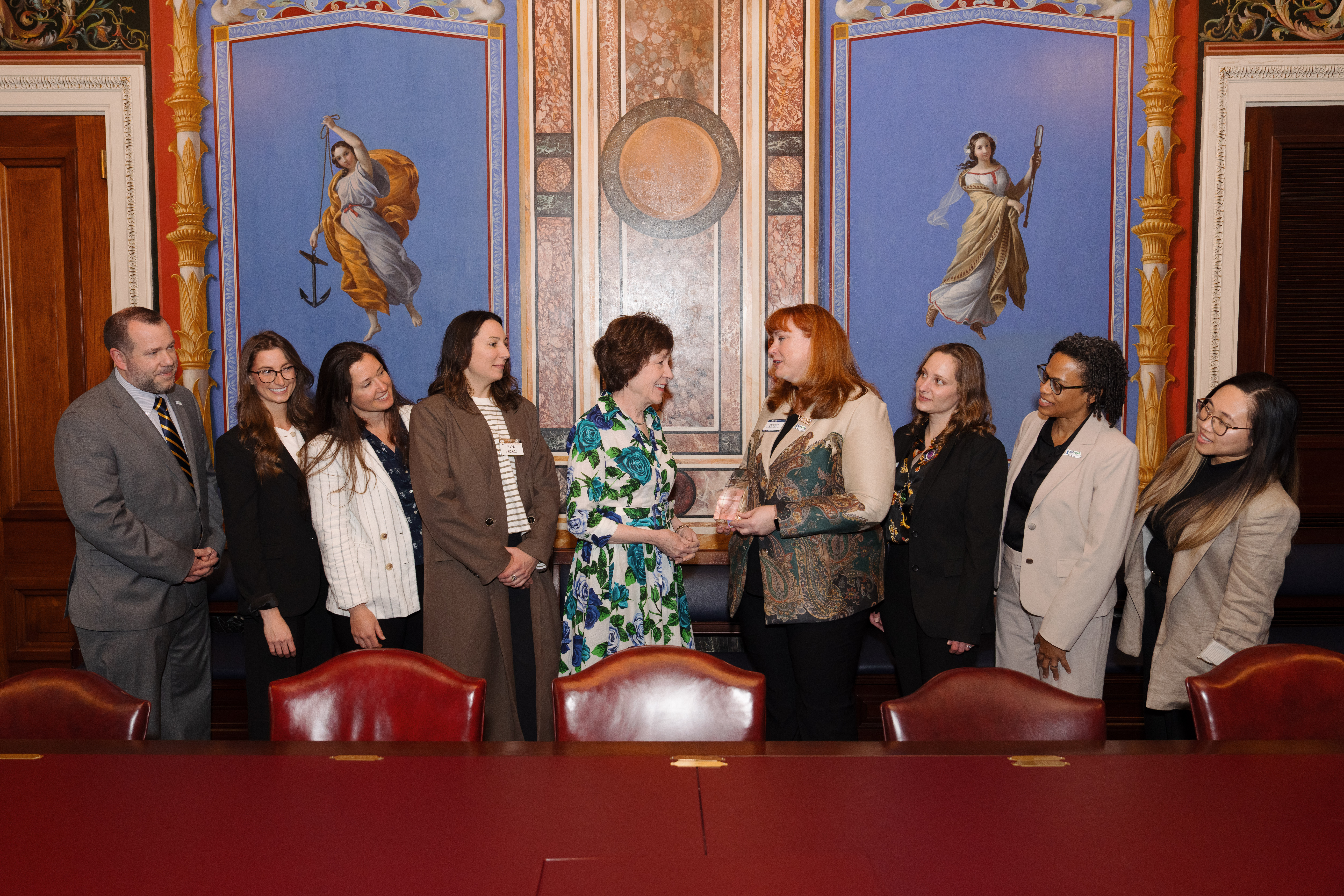 Senator Collins was presented the award by a group of CRNAs and nursing students from Maine. The group included: