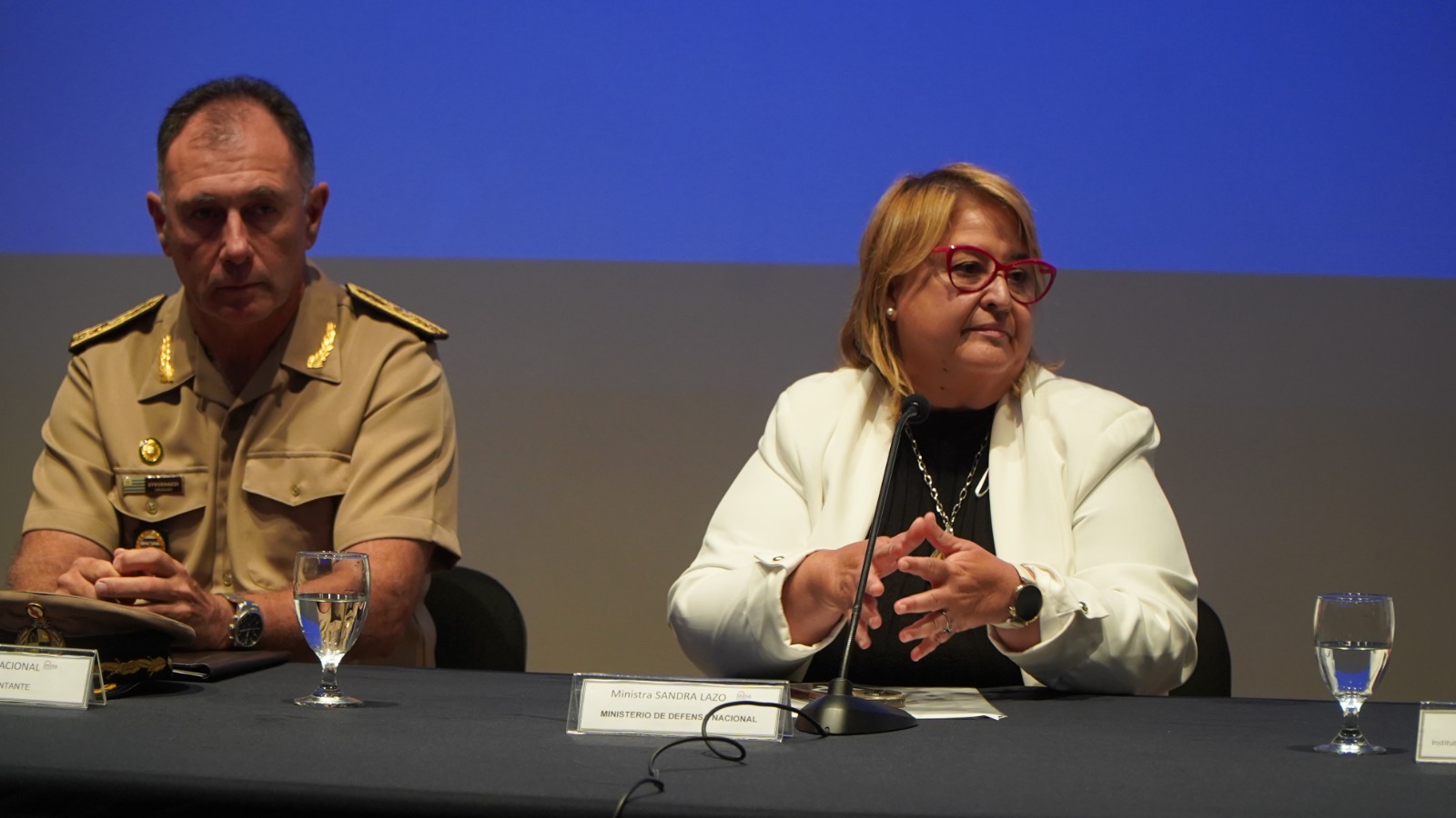 La mesa estuvo conformada por la ministra de Defensa Nacional, Sandra Lazo, el comandante en jefe del Ejército, Gral. de Ejército Mario Stevenazzi, el presidente del INISA, Jaime Saavedra y los directores del Inisa Daniel Radío y Ángel Fachinetti.