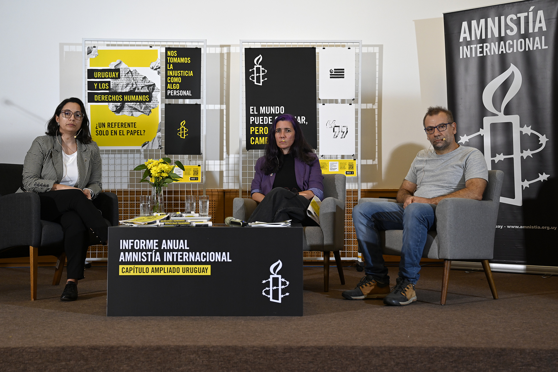 La presentación estuvo a cargo de la directora ejecutiva de Amnistía Internacional Uruguay, Lucía Pérez Chabaneau, de la periodista Ana Laura Pérez, del economista Martín Sanguinetti.